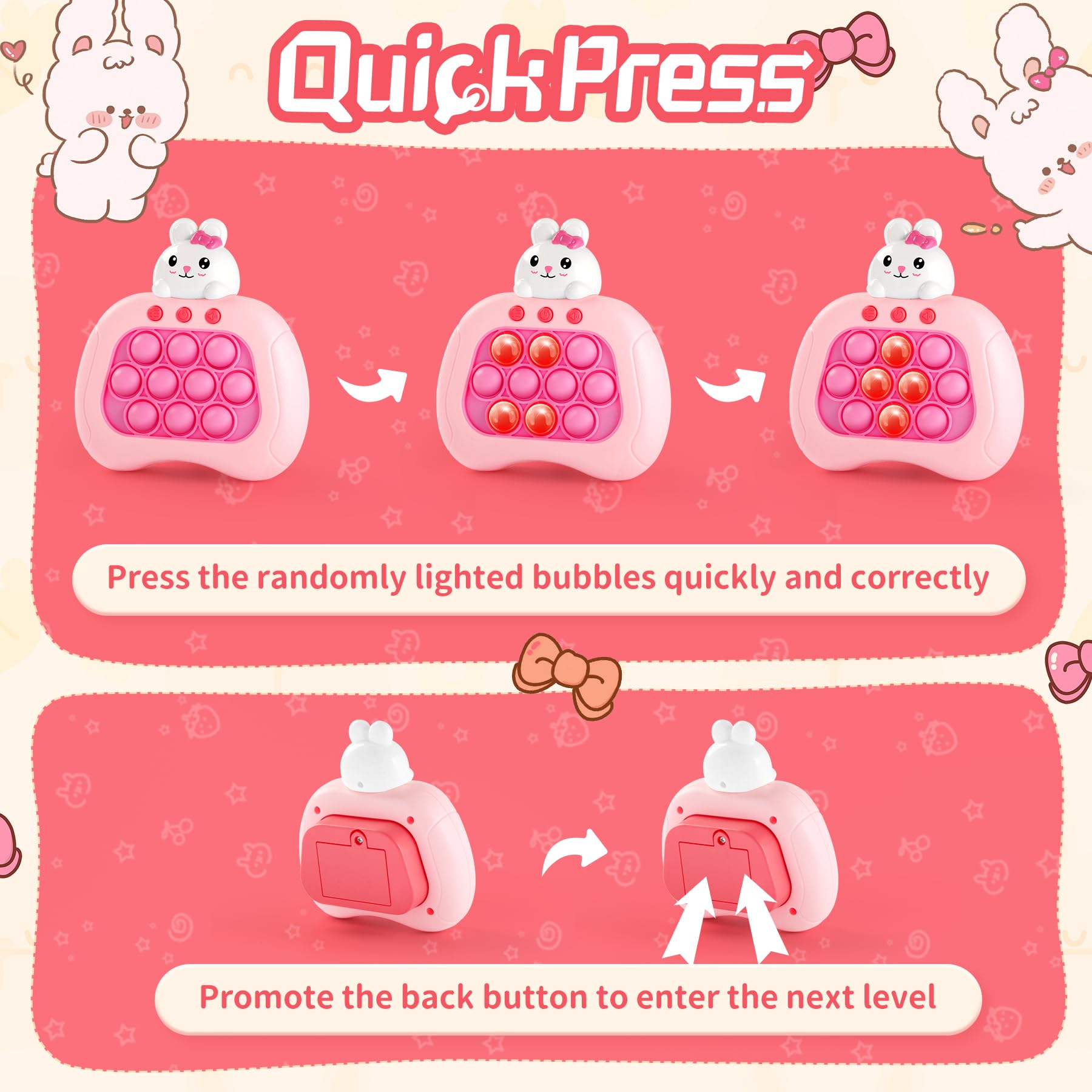 Rabbit Pop Push Game Fidget Toy for Kids Ages 3-12,Handheld Fast Push Game Bunny Console Fidget Toys for Girls Boys,Light Up Sen