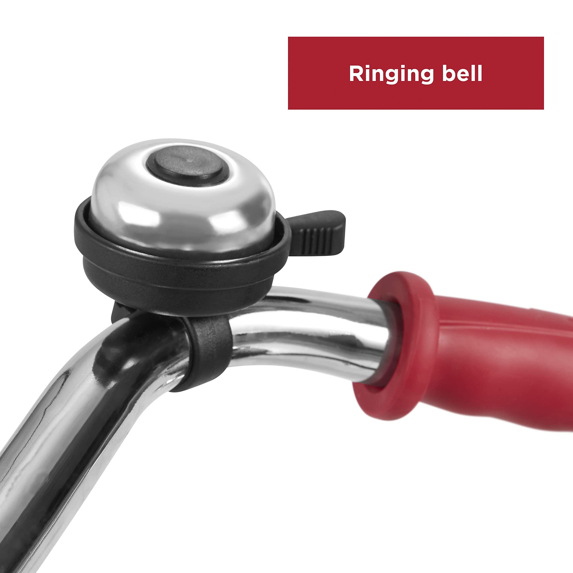 - Q: What are the unique features of this tricycle? A: This classic tricycle features a durable steel frame, comfort handgrips, a large 12-inch front tire for a smooth ride, streamers that flow in the wind, and a ringing bell for added fun.