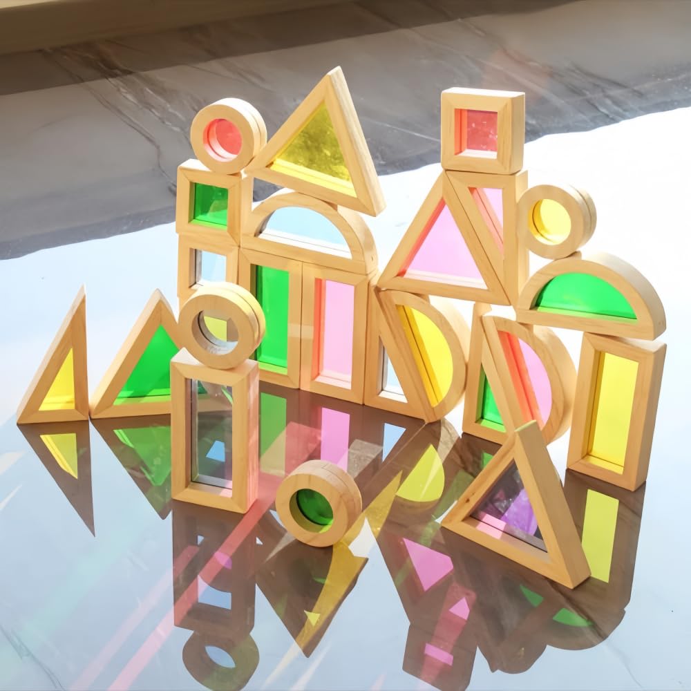 This Wooden Rainbow Building Block Uses Acrylic Transparent Material, Bright Colors And Strong Light Transmission, A Box Contains 25 Building Blocks, Moderate Size, Easy For Children To Grasp. It Weighs 2.65 Pounds And Is Lightweight And Portable. This Building Block Can Not Only Help Children Establish The Cognition Of Color And Light, But Also Exercise Their Creativity And Imagination Through Creative Construction, Sensory Toys For Toddlers 1-3 , Which Is An Excellent Choice For Children'S Early Education. Size: The Block Set Consists Of 25 Blocks In 8 Different Shapes; The Dimensions Are As Follows Square: 1.96 Inches X 1.96 Inches Rectangle: 3.74 Inches X 1.88 Inches Circle: 1.85 Inches X 1.85 Inches Semi-Circle: 3.74 Inches X 1.88 Inches Sector: 1.88 Inches X 1.88 Inches < / P > < P > Arch: 3.74 ''X 1.85'' < / P > < P > An Equilateral Triangle: 3.74 ''X 3.34'' < / P > < P > Right Triangle: 3.74 ''X 2.16'' < / P > < P > Uniform Thickness: 0.98 Inches < / P >