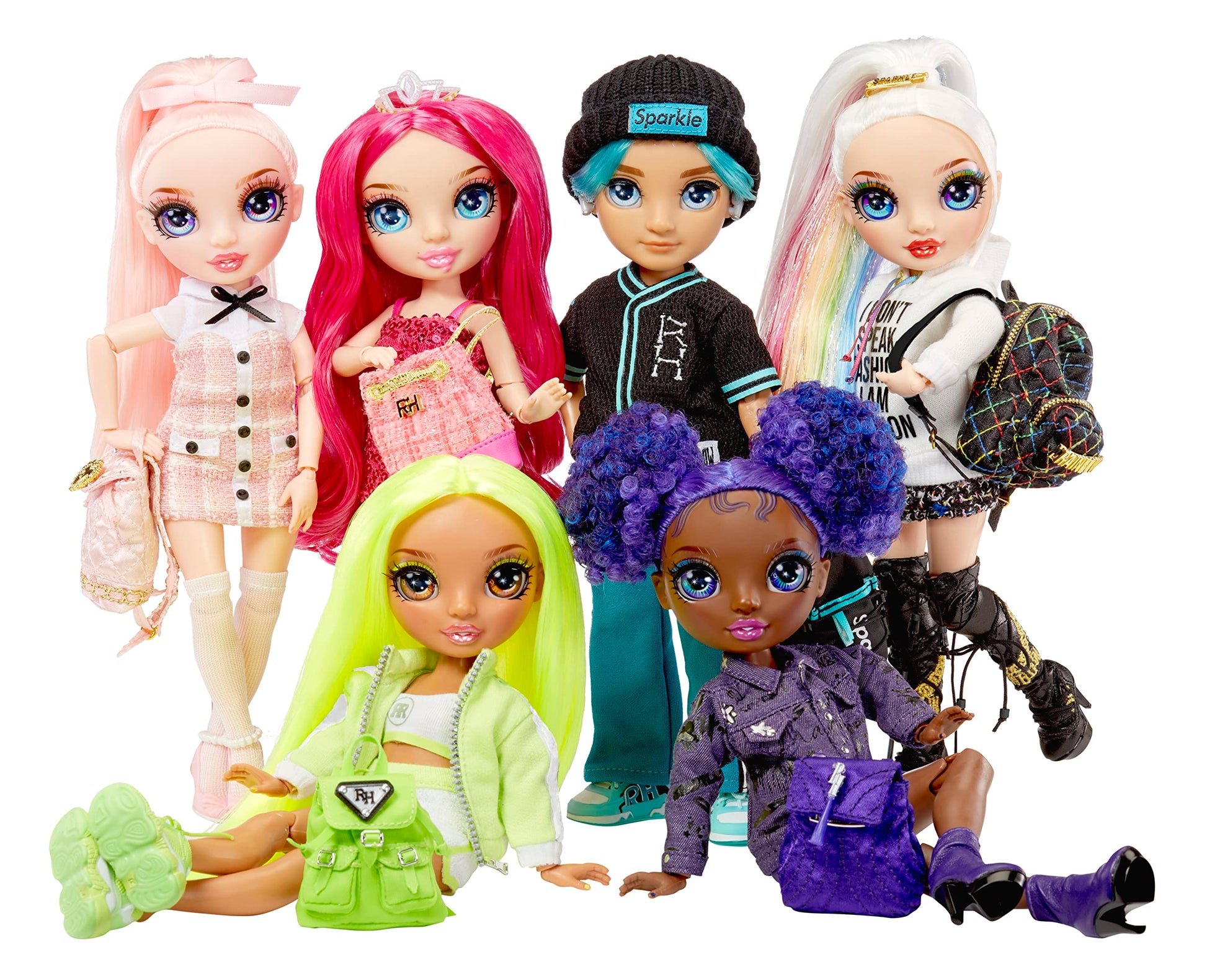 Rainbow High inspires creativity! Go back in time and meet your favorite students Bella, Stella, Karma, River, Krystal, Amaya before they became friends and followed their creative dreams to Rainbow High. Each themed playset comes with a complete doll outfit, doll with new younger face-sculpts, and a soft fabric backpack to carry their school essentials. They have gorgeous features! Karma Nichols is dressed in her signature NEON GREEN from head to toe. She has a gorgeous younger face sculpt, detailed features in her fashion, beautiful long neon green hair, long eye lashes and glass eyes. Girls and boys ages 6 7 8+ to Collectors can join the fun by collecting the colors of the rainbow from pink to purple to iridescent pearl! Celebrate the holidays, Christmas, and birthdays with excitement and imagination from Rainbow High! Collect the Rainbow of all the gorgeous Jr High fashion dolls.From MGA Entertainment, creators of LOL Surprise OMG fashion and collectible dolls, Rainbow High posable fashion dolls, Mermaze Mermaidz mermaid dolls with color change, MGAE Miniverse, Na Na Na Surprise dolls, Bratz fashion dolls, MGAs Dream Ella fashion fairy princess and unicorn dolls, MGAs Glitter Babyz, Lalaloopsy, Baby Born Surprise baby dolls and collectibles, Little Tikes kids toys and many other favorite brands.