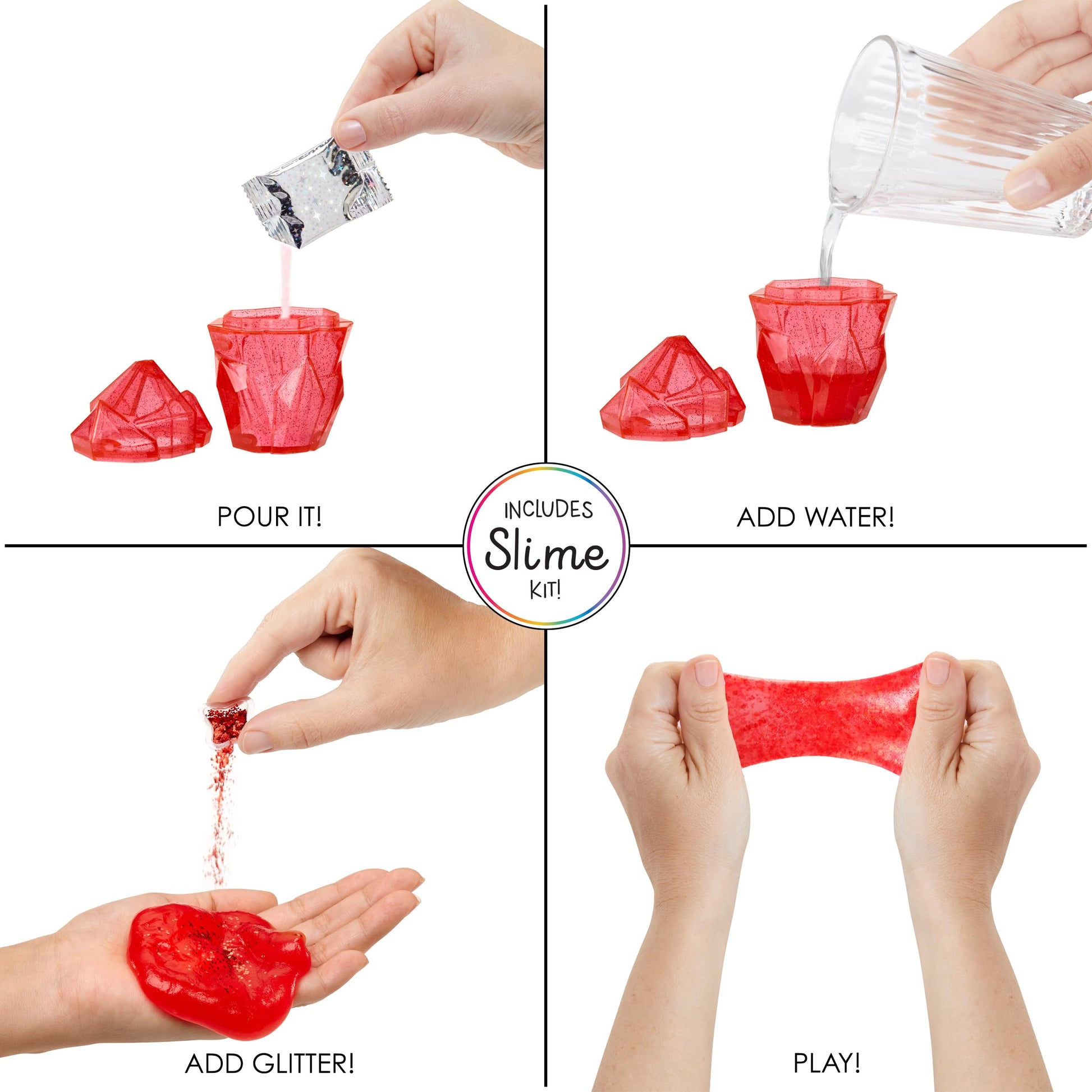 • Q: How do you make the DIY sparkle slime that comes with the doll? A: To create the DIY sparkle slime, pour the colorless slime and sparkle powders into the included crystal shaker, add a little water, and shake it up. Follow the included directions for the best results.