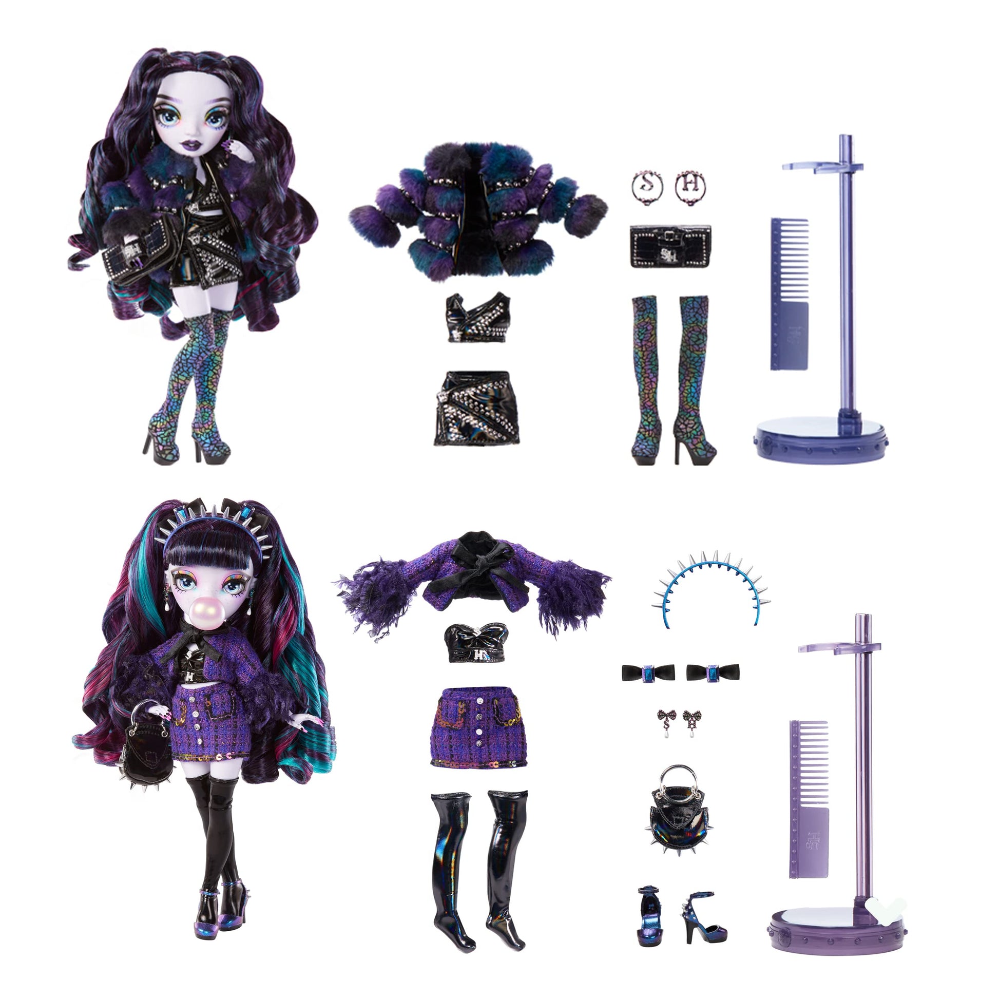 The Shadow High & Rainbow High School Rivalry Is Fierce & Legendary! And Shadow High Has Their Own Set Of Twins. Introducing The Storm Sisters-Naomi & Veronica. They Rule The Catwalk And The Hallways Of Shadow High. Dressed In Their Sleek Oil Slick Purple And Black Outfits, They Are Ready To Rock The Hallways.