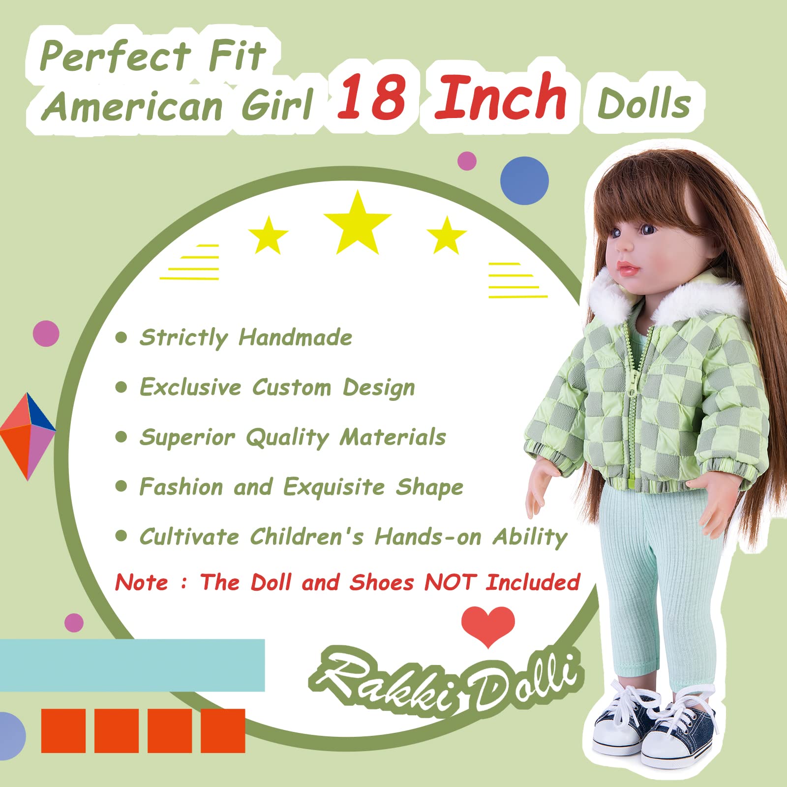 Rakki Dolli Doll Clothes 3 Pc. Set Light Green Grey Plaid Hooded Thick Coat Checkerboard Jacket With Long Sleeve, Warm Doll Outfit Hoodie Snowsuit Fits For 18' Dolls (Doll & Shoes Not Included) 013