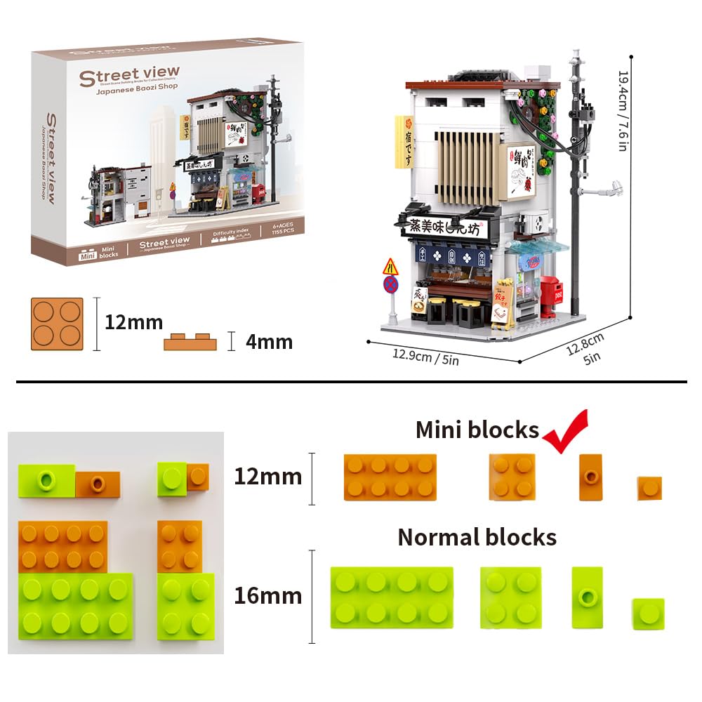 Ravayo Japanese Street View Baozi Shop Building Blocks Toy - 1155Pcs Mini Brick Simulation Architecture Construction Toy