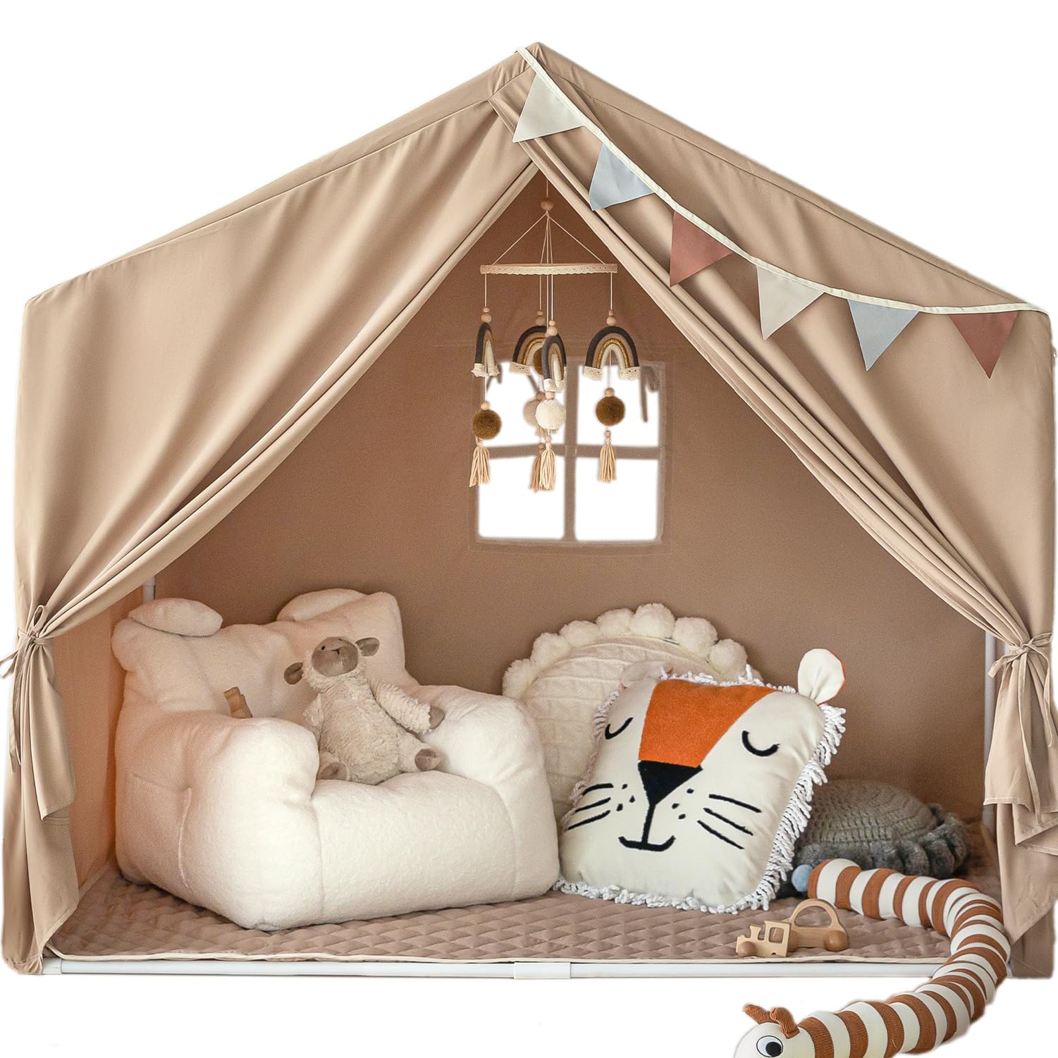 Razee Kids Play Tent With Mat, Large Playhouse Tent Indoor, Play House Kids Tent Castle Tent For Girls Boys, Play Cottage (Khaki)
