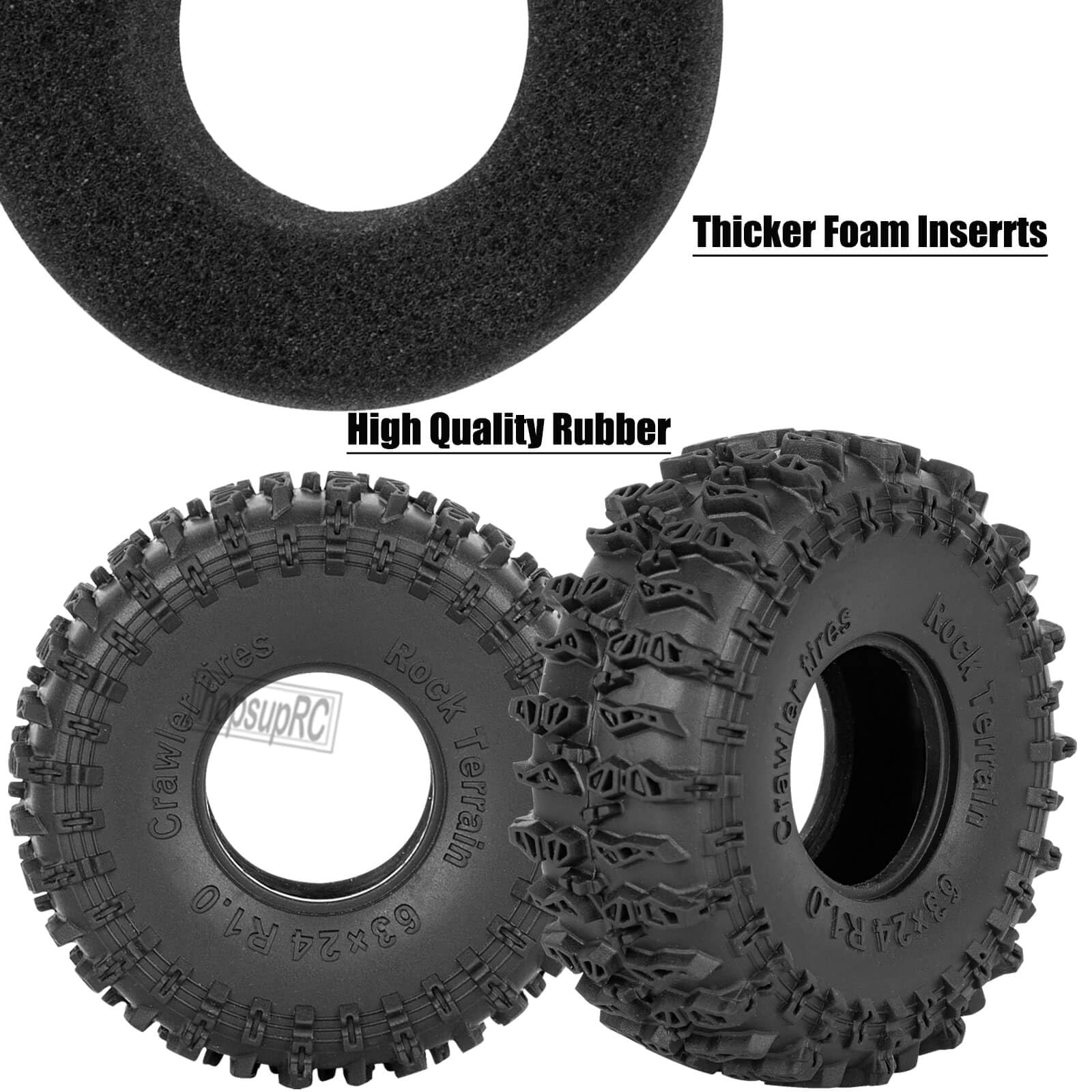 RC 1.0in Beadlock RC Truck Tires Wheels Tires for 1/18 1/24 Trx4m SCX24 RC Crawler.Aluminum 1.0in Beadlock Wheel Rim&1.0in Tires Tyres.Black(4PCS)