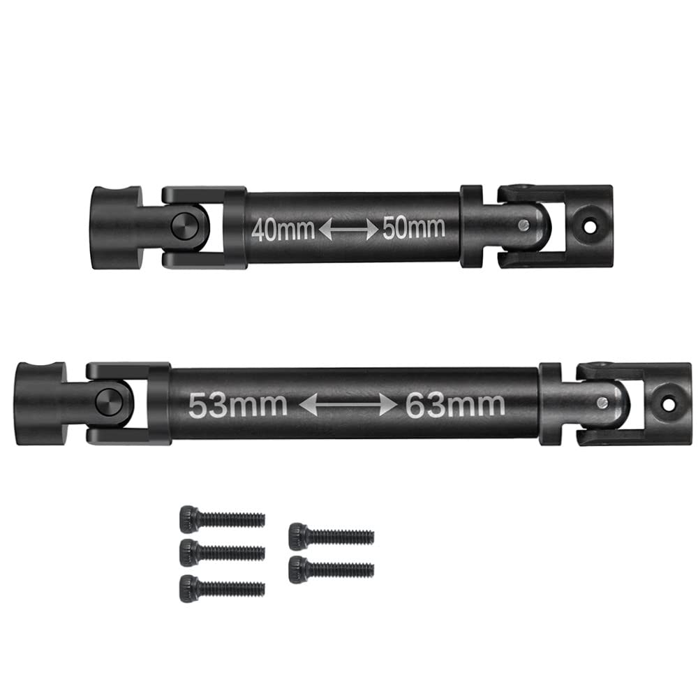 Specification: Product name: RC Car Drive Shaft Color:Black Material:Steel Length Range:40-50mm;53-63mm; Weight:19g/2pcs Package include: 2pcs x Universal drive shafts