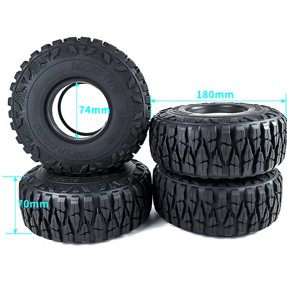 - Q: What are the dimensions of the RCLIONS 2.9inch tires? A: Each tire has an outer diameter of 180mm (7 inches), an inner diameter of 74mm (2.9 inches), and a thickness of 70mm (2.75 inches), providing a robust solution for your RC crawler.