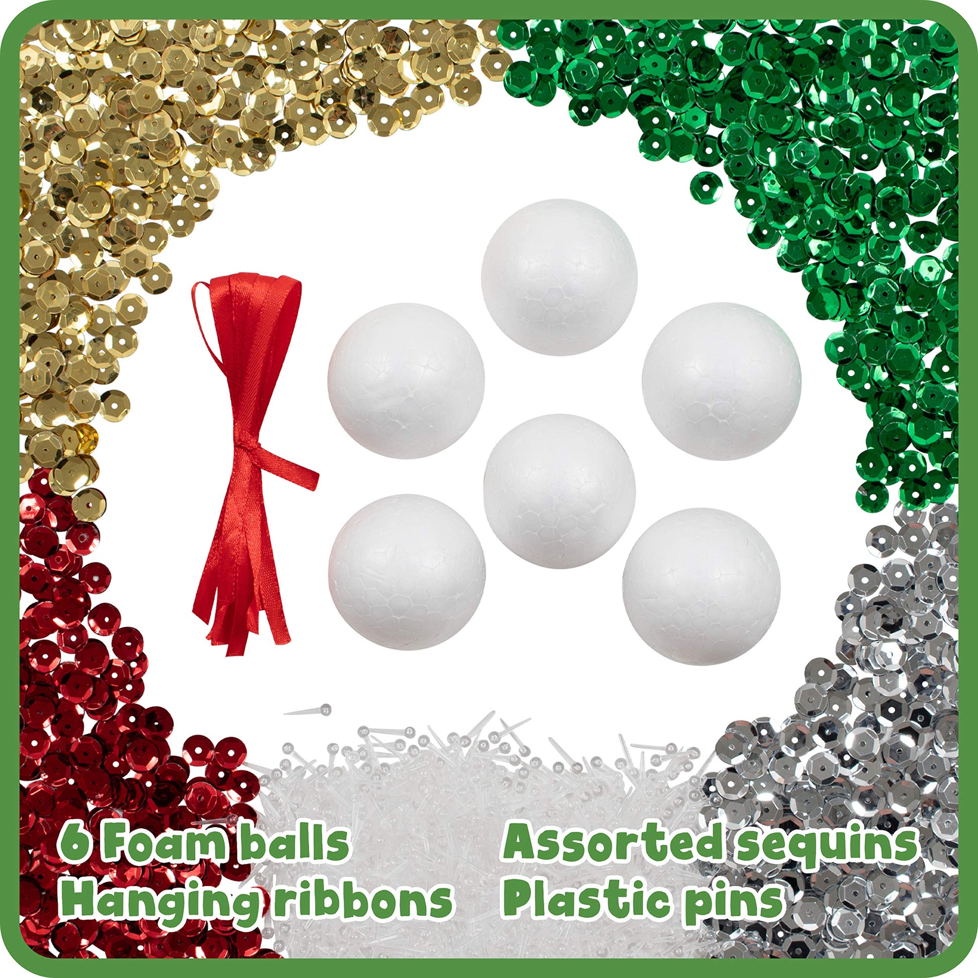 - Q: How big are the foam balls in this kit? A: Each foam ball measures six inches in diameter. This size is perfect for creating eye-catching ornaments.