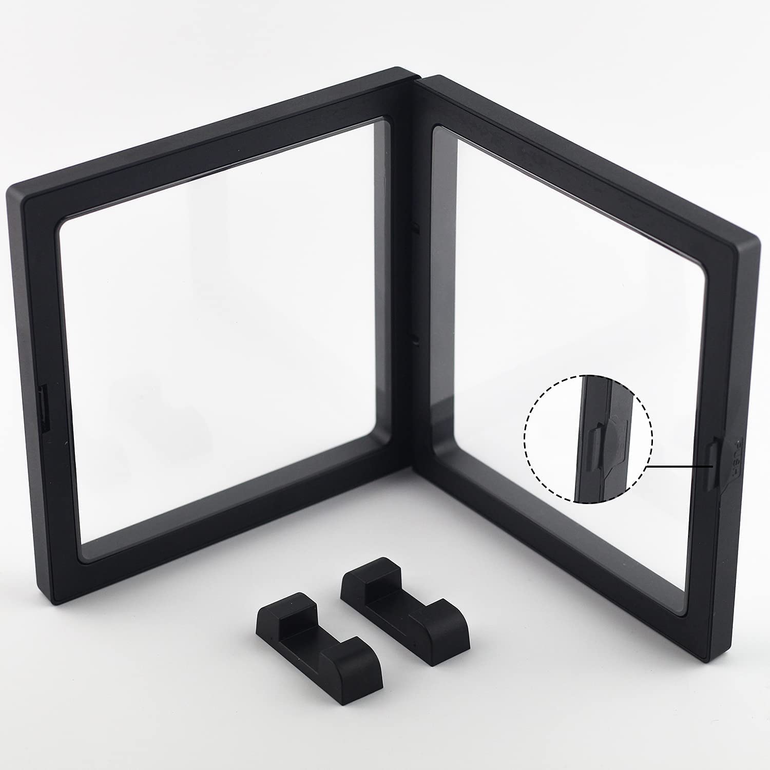 Rechiato 2Pcs Of 3D Floating Display Cases 5.5'' 5.5'' 0.8'', Coin Display Case Coin Holder Coin Display Frame Stand Holder Fo