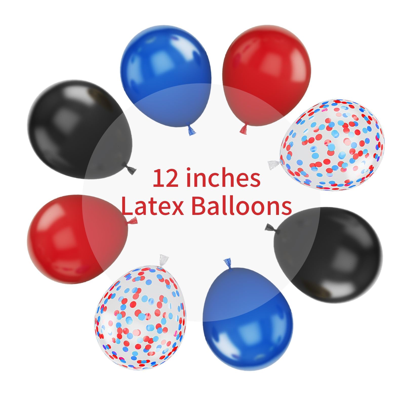 Red Blue Black Balloon Set, 12 Inch Matte Red Black And Royal Blue Latex Balloon With Red Blue Confetti Balloons For Super Spide