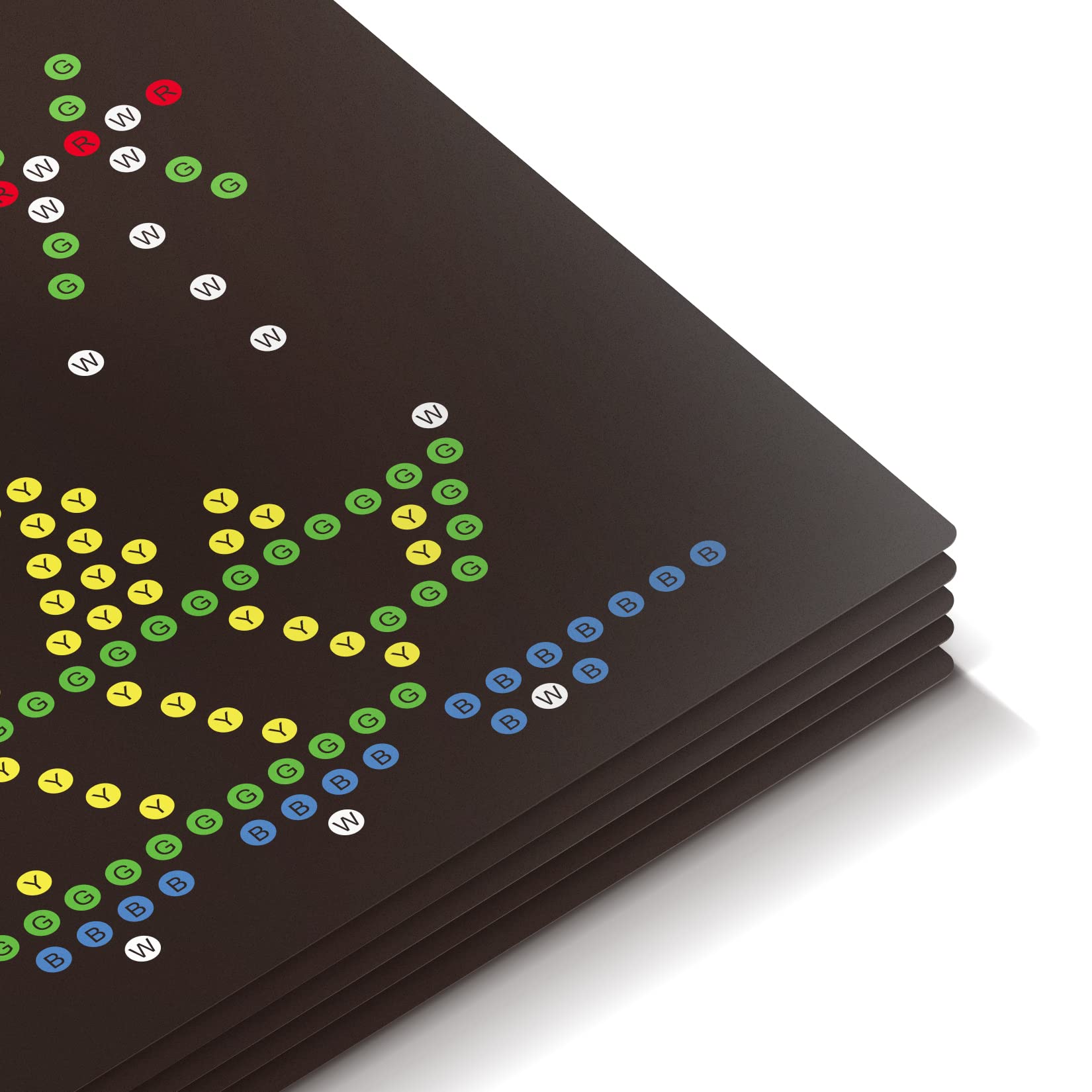 - Q: What is included in the package of Refill Templates? A: The package includes 20 design templates featuring a transportation theme, each labeled with letters corresponding to the colored pegs that fit into the light screen panel.