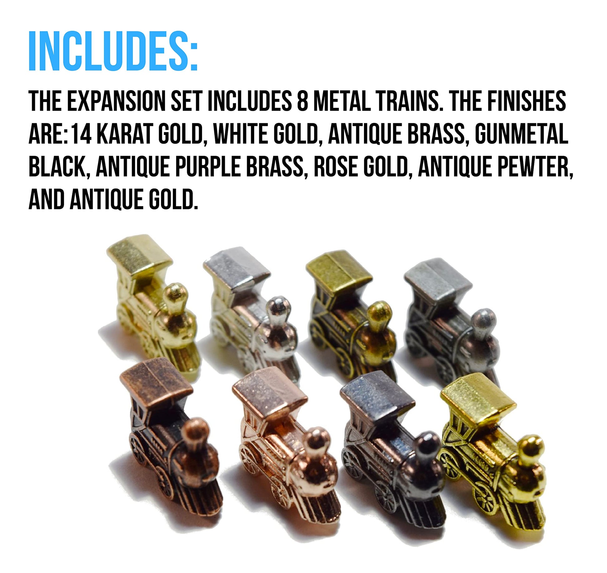 Includes 8 Metal Trains with Unique Finishes, 1 Wooden hub, and a Score Pad - Converts any Domino Set to Mexican Train Dominoes or just improve your existing set.