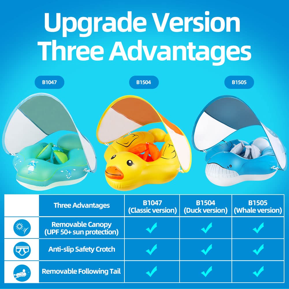 View compareRelaxing Baby - Swimming Float Ring With Removable Sun Protection Canopy,Anti-Slip Crotch,Add Tail Chamber Never Flip Over Baby