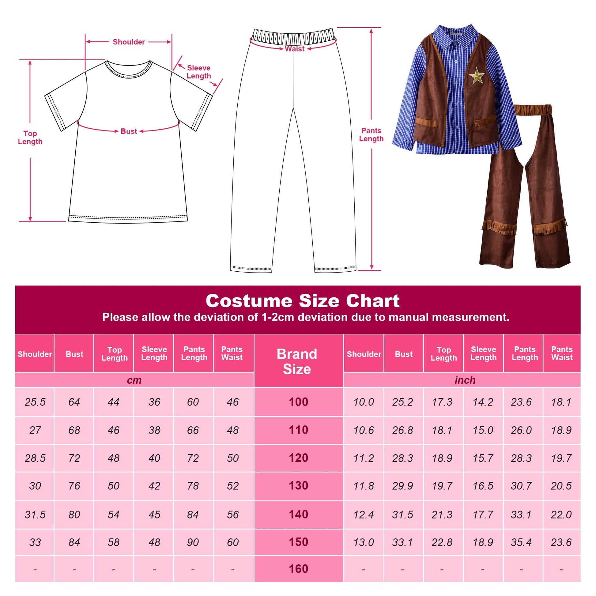 ?Material?: 100% polyester | ?Design?: Pants tassel design; Vest and shirt can be separated | ?Content?: Blue shirt, vest, pants, vest and cowboy hat | ?Occasions?: Suitable for performance, dance party, Halloween, cosplay, birthdays etc | ?Precautions?: Avoid cleaning with hot water; Hand wash, do not bleach. Do not dry clean.
