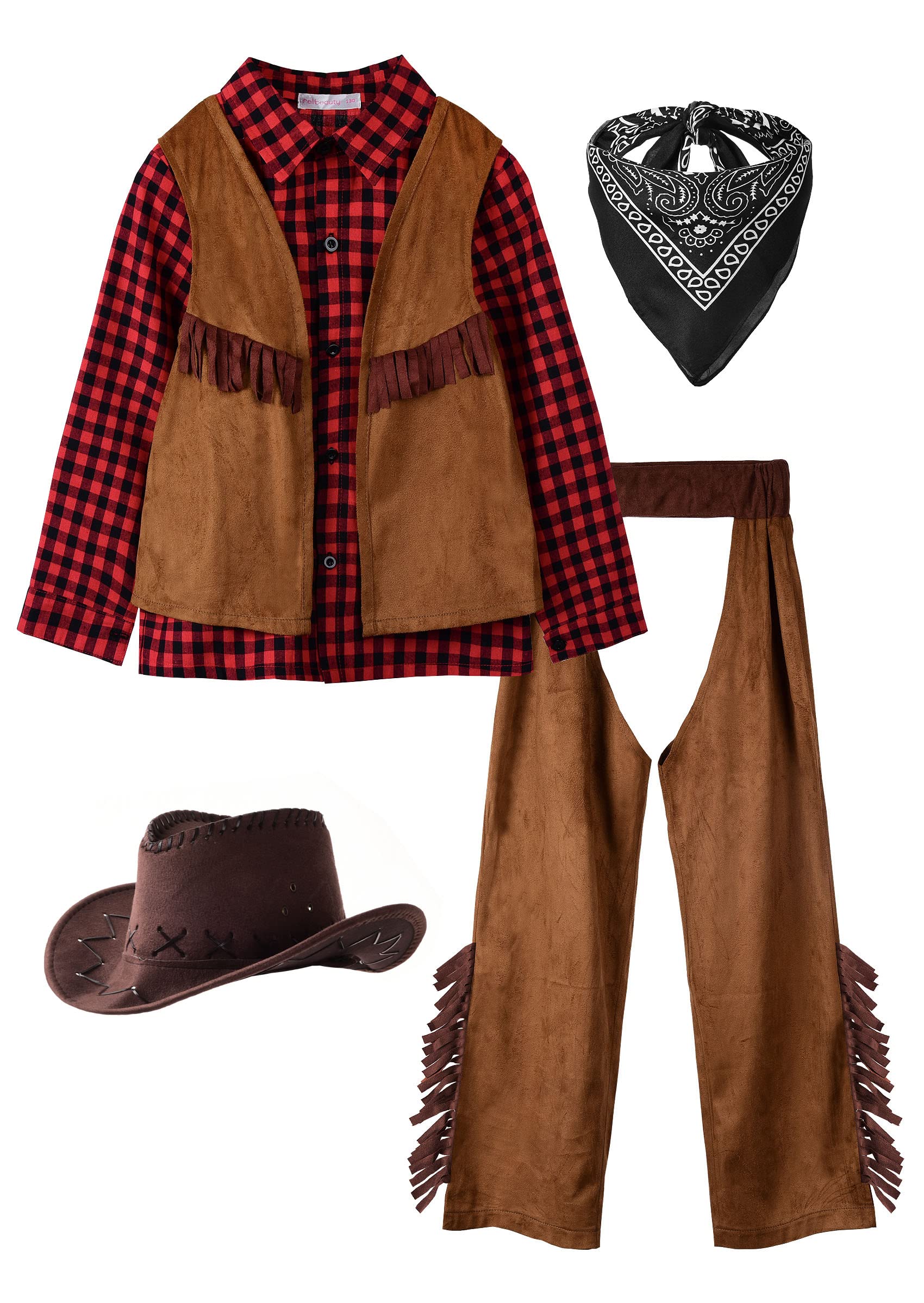 View compareRelibeauty Kids Cowboy Costume For Boys Cosplay Costumes Birthday Party Christmas Halloween Dress Up Gift For Kids 5 Sets,Red 6/130