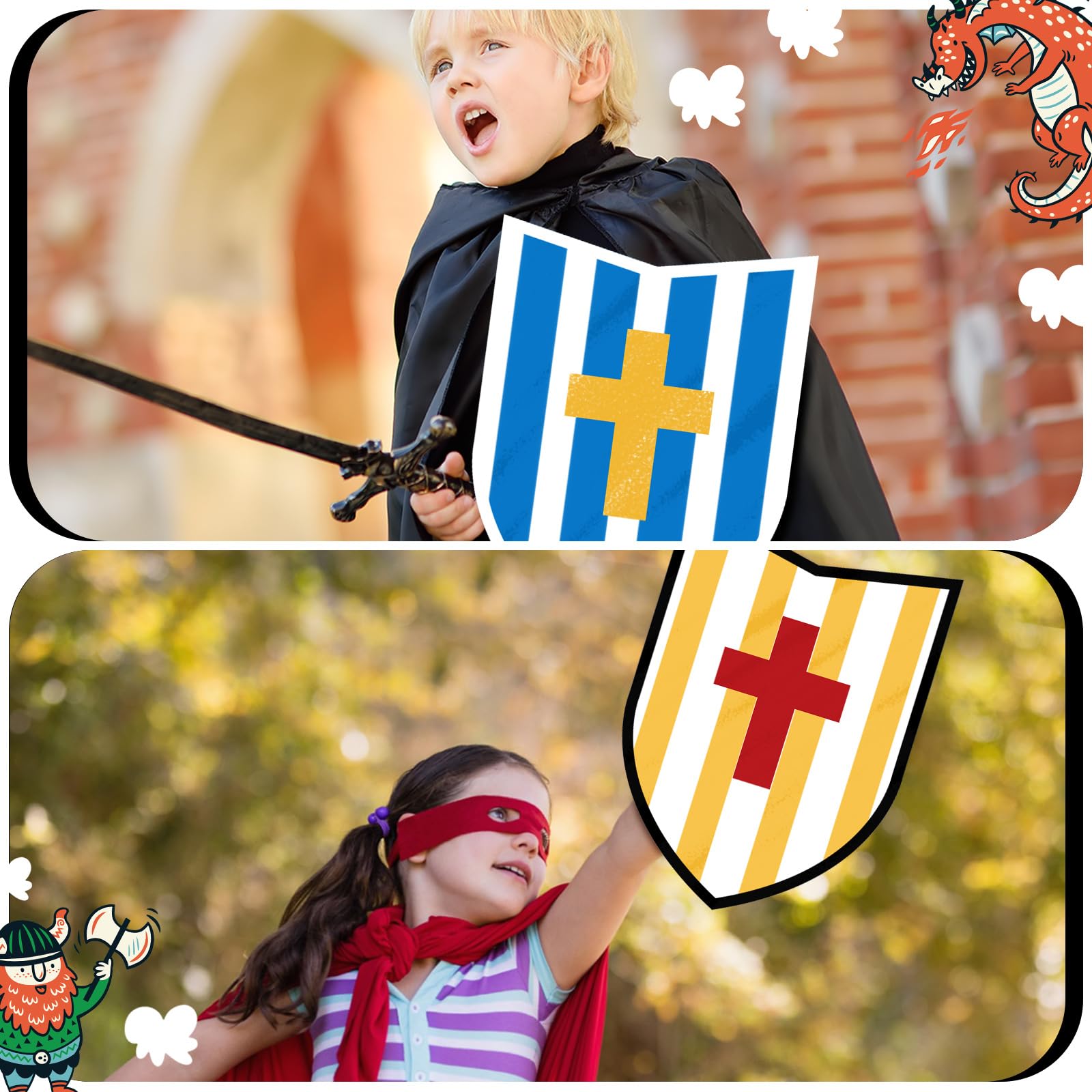 ReliThick 36 Pcs Paper Shields for Kids DIY Shields Craft to Decorate Cardboard Shield Shapes Cutouts with Handles for Markers C