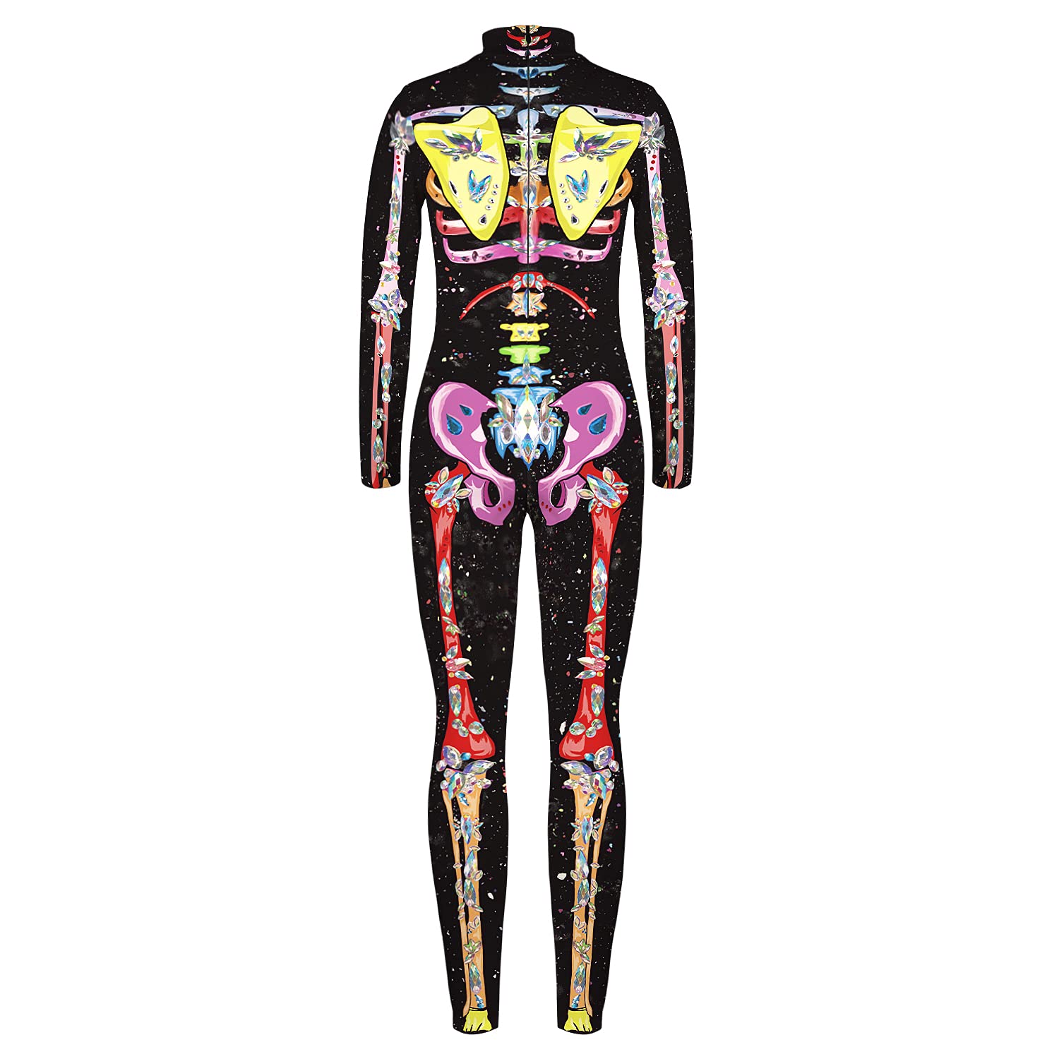 - Q: How does the zipper back closure work on this bodysuit? A: The skeleton bodysuit features a convenient zip back closure that makes it easy for kids to put on and take off, ensuring a comfortable fit while they enjoy their activities.