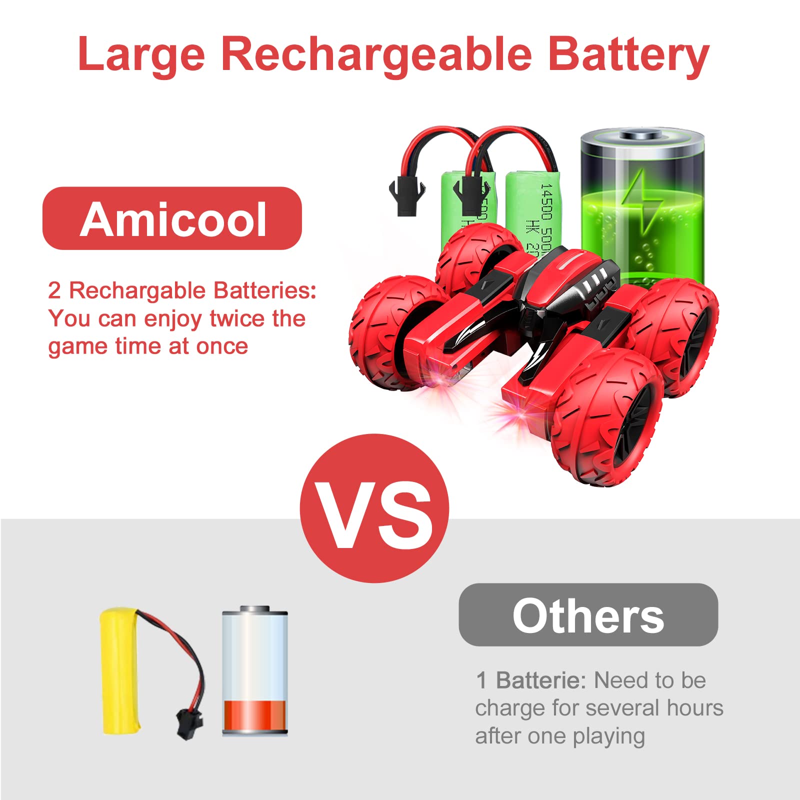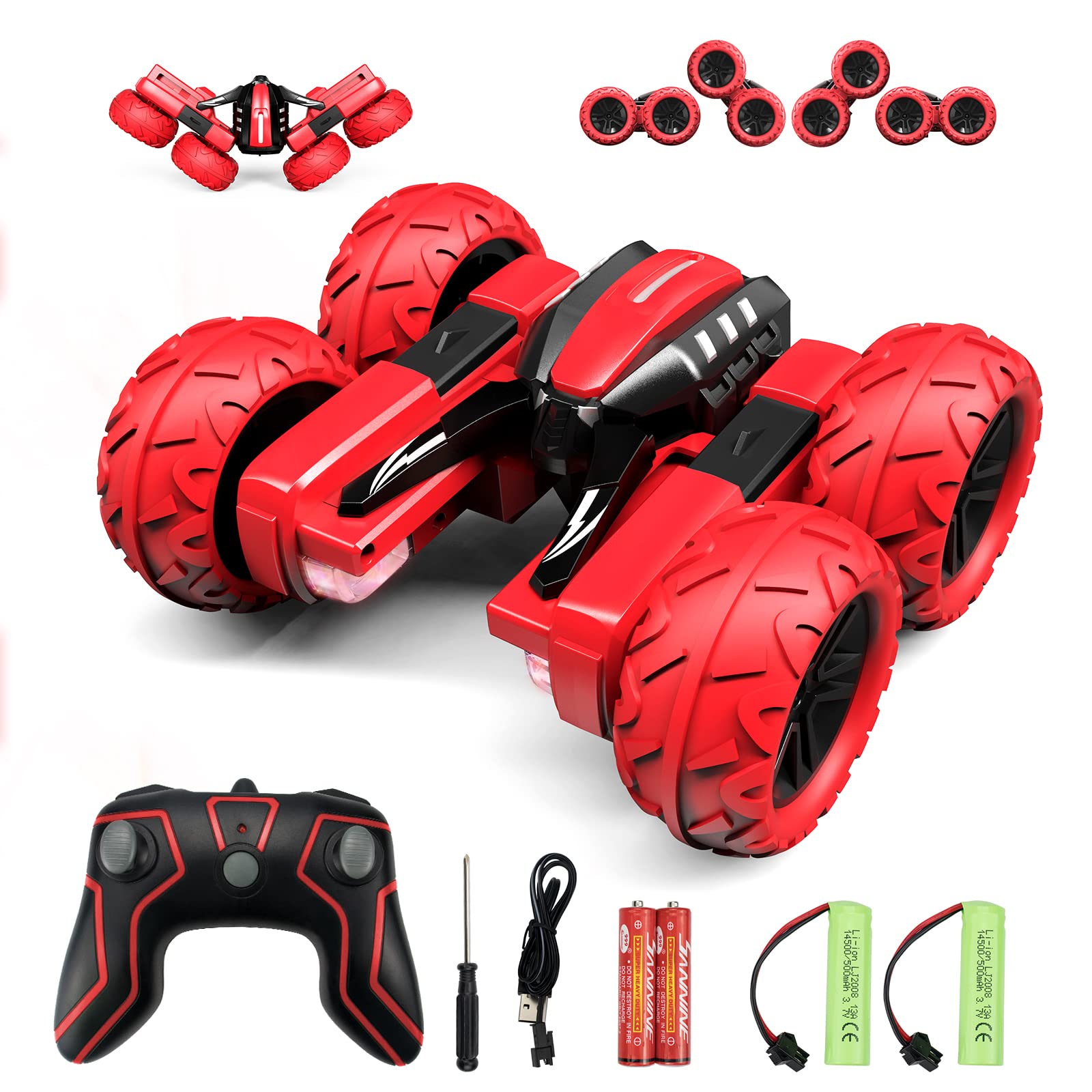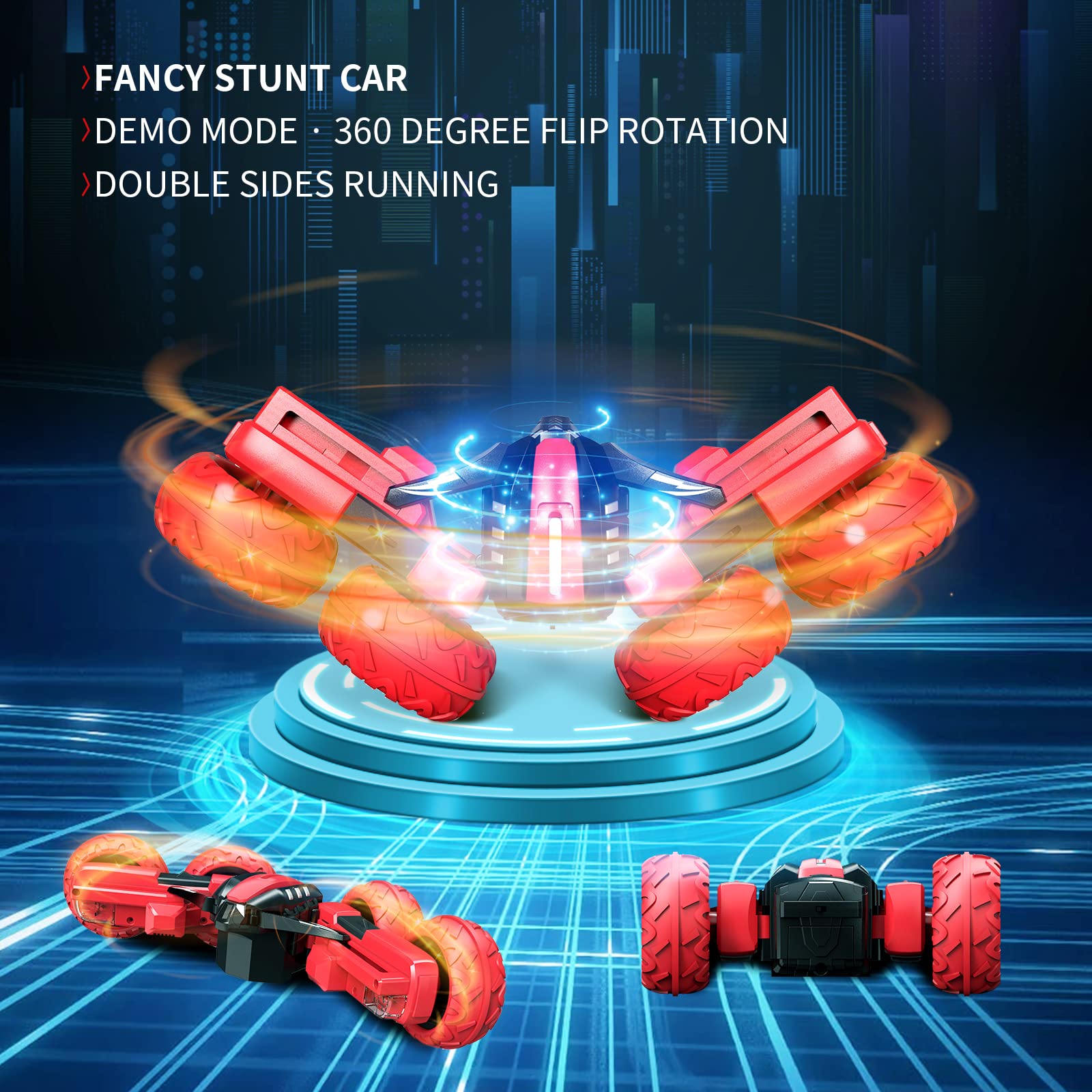 Amicool Remote Control Car, Hobby RC Car Stunt Car with LED Light Electric 4WD 2.4Ghz Double Side Rotating Racing Vehicle 360 Flips Offroad Kids Toy