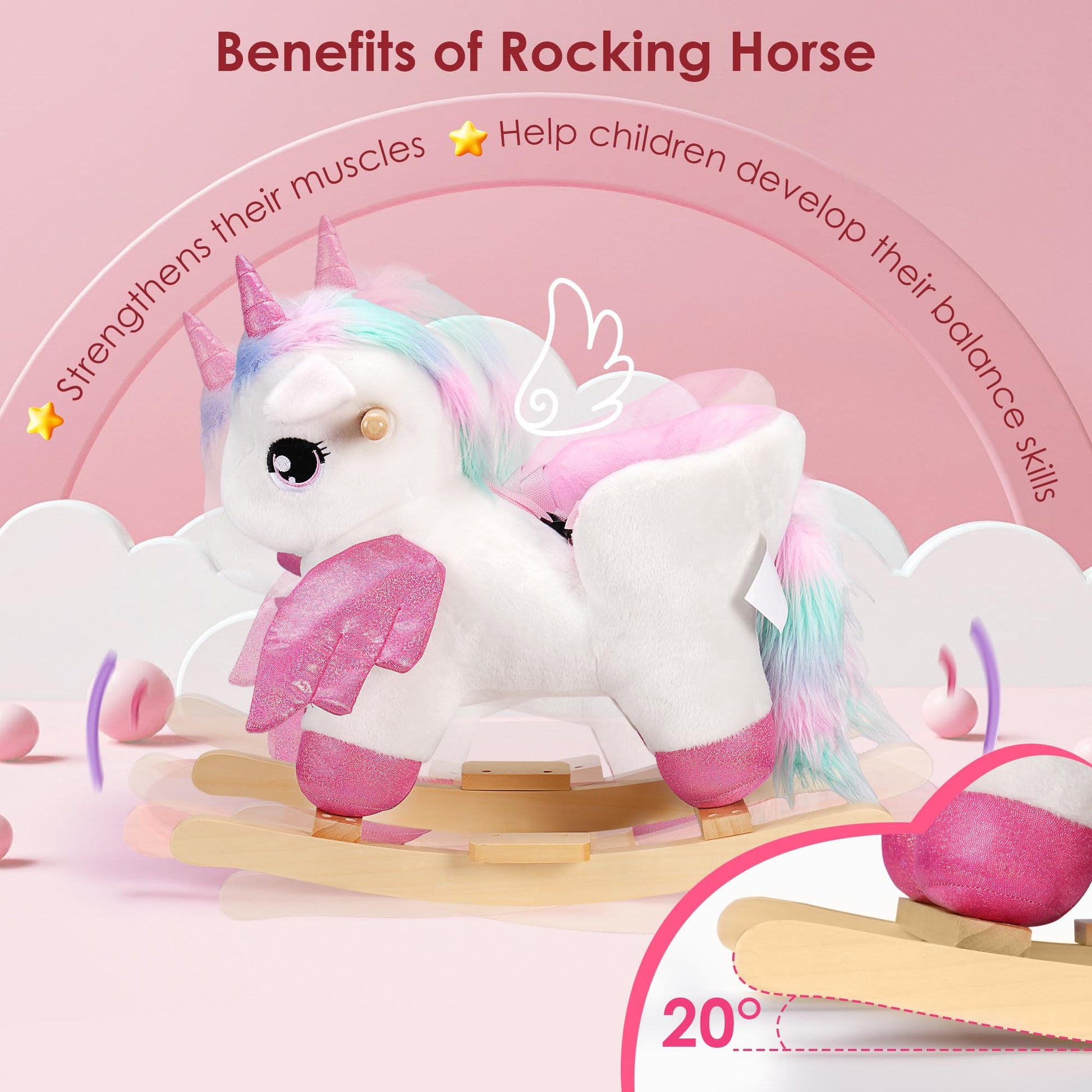 View compareRengue Unicorn Baby Rocking Horse, Toddler Kids Pink Fairy Unicorn Rocking Horse With Wooden Base Seat Safety Belt For 6 Months