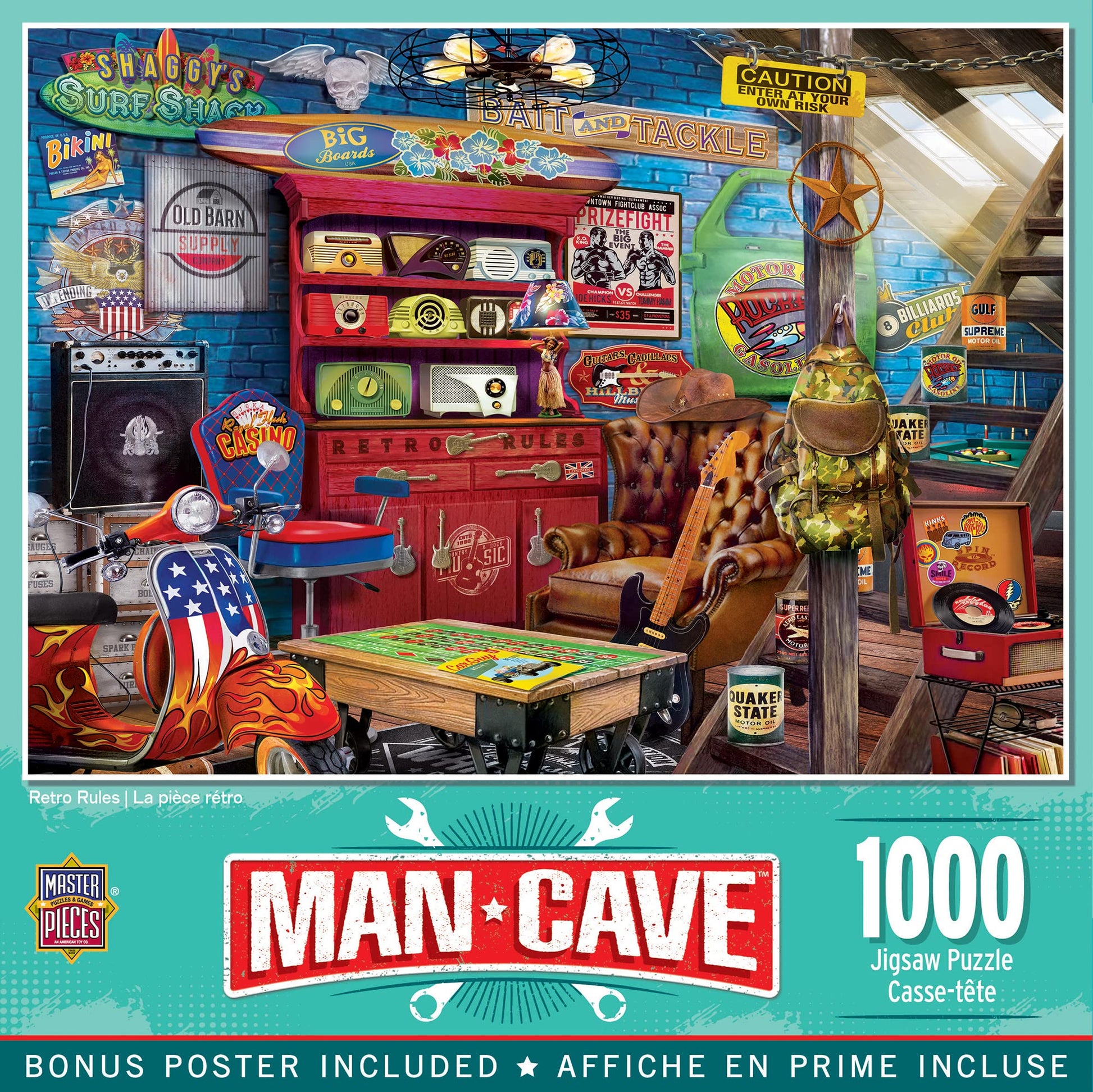 - Q: What makes this puzzle different from other puzzles on the market? A: The Man Cave - Retro Rules 1000pc Puzzle stands out due to its unique random-cut pattern, higher quality materials, and the focus on creating a relaxing yet challenging puzzling experience.