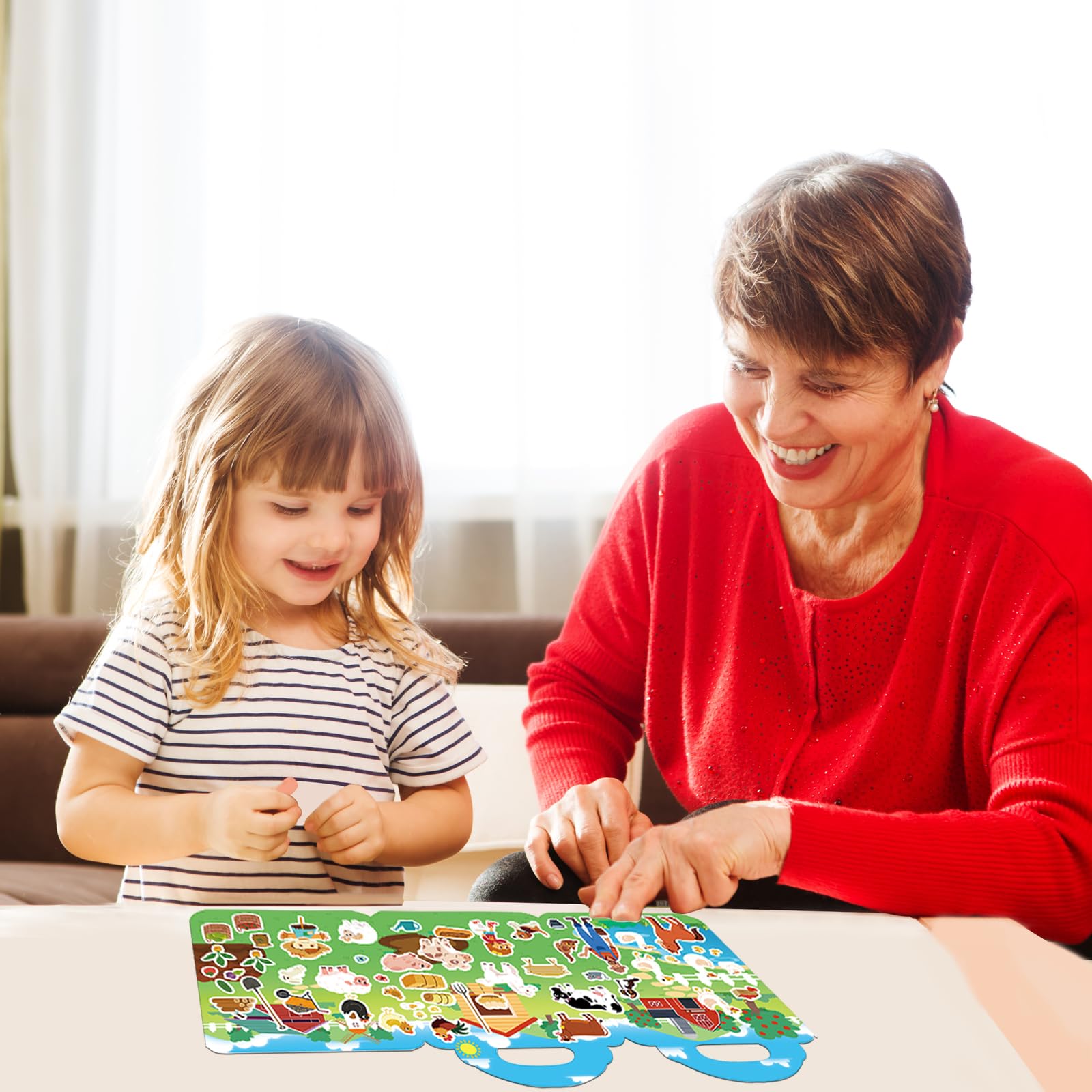 Reusable Sticker Books For Kids 2-4, Stickers For Toddlers 2-4 Years, 53Pcs Farm Reusable Stickers For Boys Girls Church Airplane Car Travel Activities