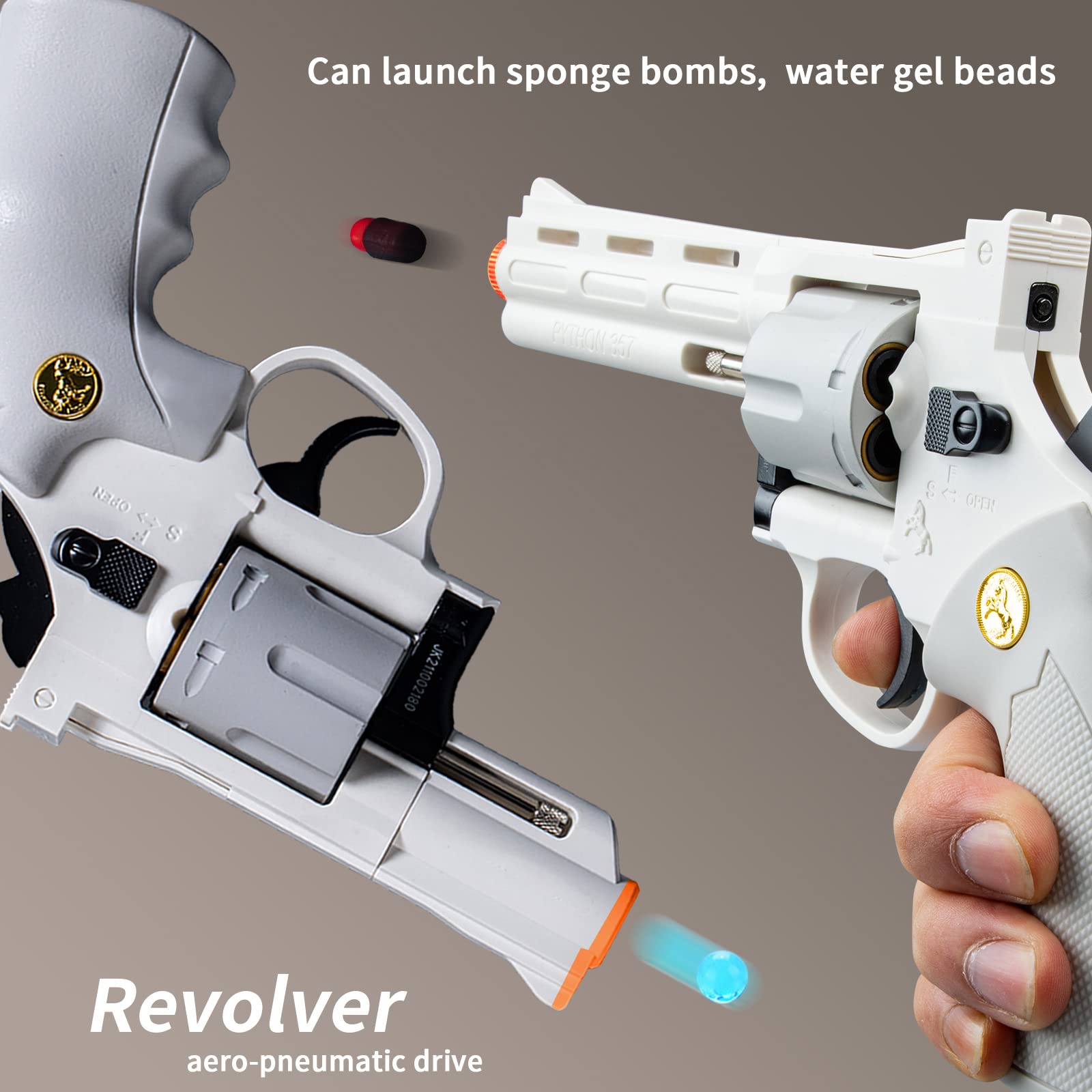 View compareRevolver Toy,Extended Barrel,Can Fire Soft Bullets,Water Gel Beads,Digital Shooting Targets With Foam Dart Toy Shooting Blaster,