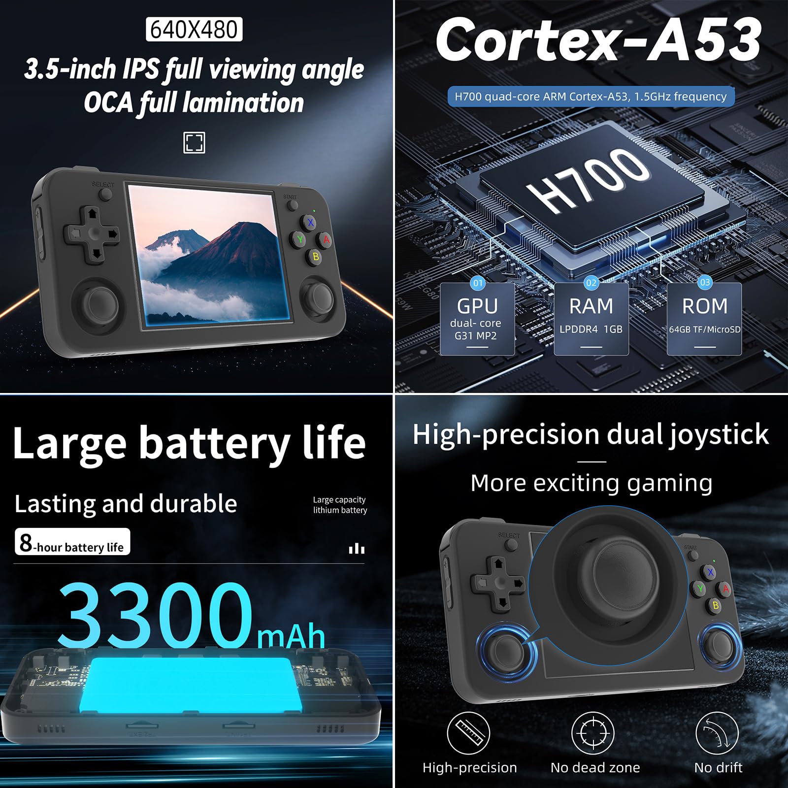 Rg35Xx H Retro Handheld Game Consoles Retro Gaming Console Held Gaming Console Handheld Video Games Consoles ?3300Mah Battery And Portable?The Rg35Xx H Handheld Game Console Is Weighing Only About 180G. It Easily Fits In Your Pocket, Allowing You To Take Your Gaming On The Go, Wherever You Are.The 3300Mah Polymer Lithium-Ion Battery That Provides Up To 8 Hours Of Continuous Gameplay. ?No Game But Support Many Games?This Retro Handheld Console Doesn'T Come Pre-Loaded With Games,But The Handheld Game Consoles Support Users To Download Games In Relevant Formats And Compatibility With Over 20 Emulators. ?Stunning Visuals? Enjoy A Captivating Gaming Experience On The 3.5-Inch Ips Full Viewing Angle Display With Oca Full Fit. The High-Resolution 640*480 Screen Ensures Crystal-Clear Visuals And Vibrant Colors, Bringing Your Games To Life. ?Seamless Connectivity?The Rg35Xx H Retro Game Console Supports Hd Output, Vibration Motor, Wifi Online Pairing, Streaming, 2.4G Wireless And Wired Controller, Expanding Your Entertainment Options Beyond Gaming. ?Quality After-Sales Service?We Are Committed To Providing Customers With Satisfactory Products And Services, We Have Taken Measures To Improve And Solve The Problems Existing In Rg35Xx H According To The Customer'S Advise. If You Have Any Questions, Please Contact Us, We Are 24 Hours Online Will Certainly Provide You With Satisfactory Solutions.