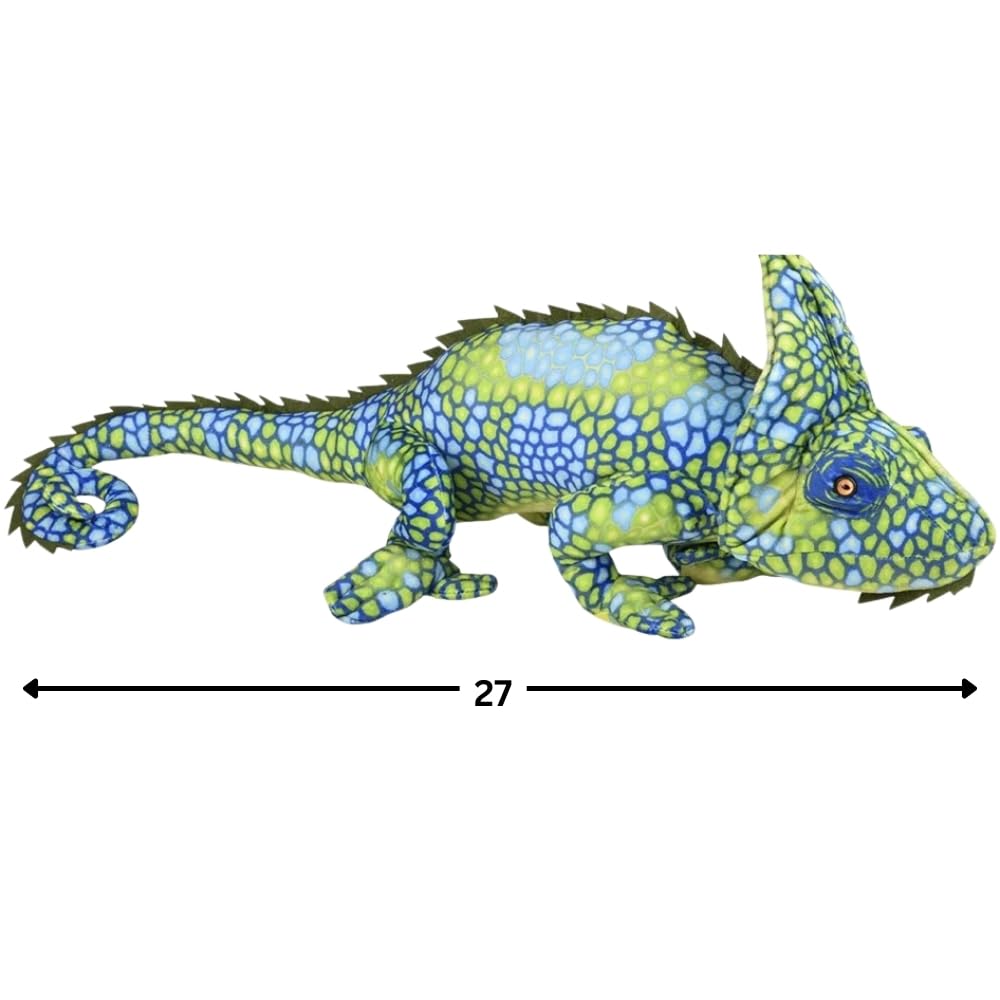 - Q: What are the dimensions of the plush chameleon? A: The plush chameleon measures 27 inches in length, with a width of approximately 9.06 inches and a length of 14.45 inches, making it a sizable and eye-catching stuffed animal.