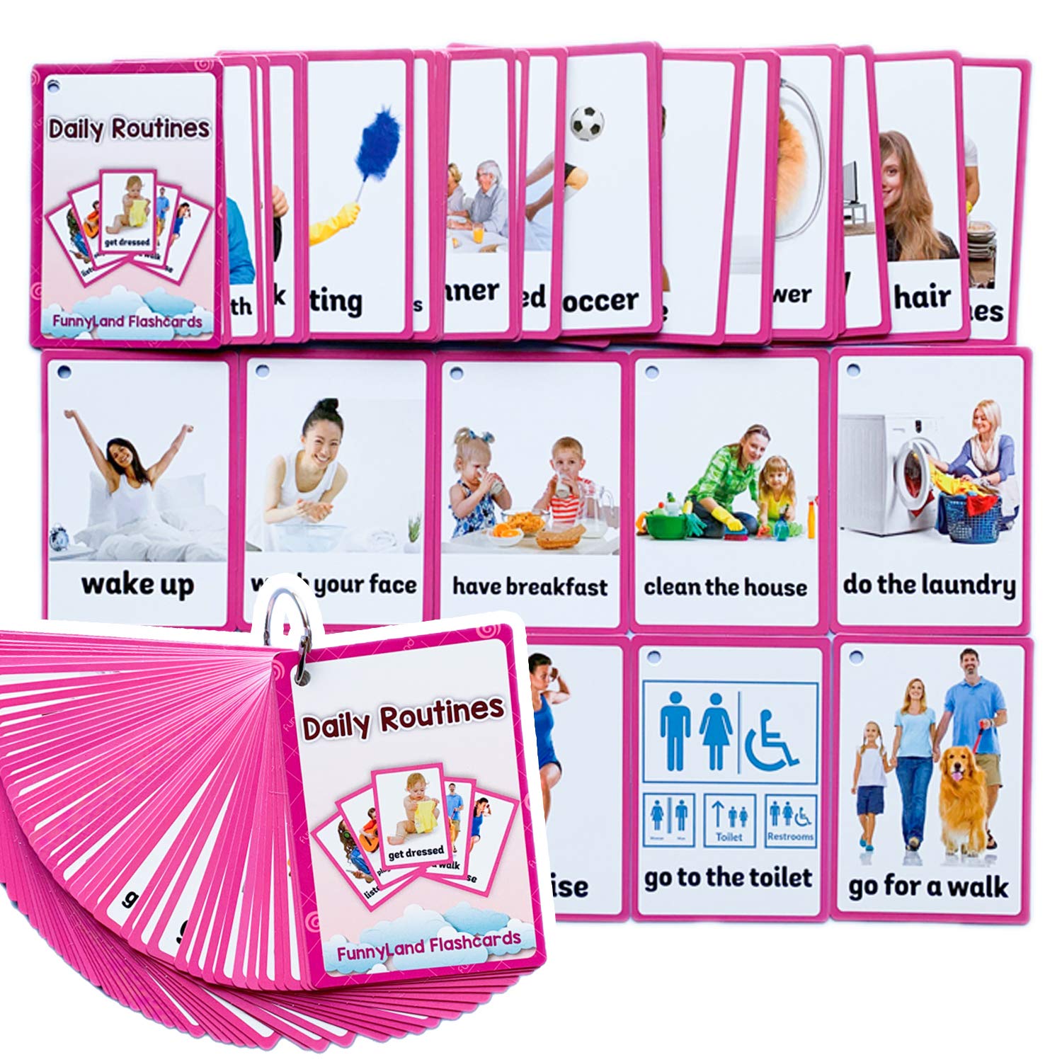 Richardy 45Pcs/Set Daily Routines Kids Gifts English Flash Cards Pocket Card Educational Learning Toys For Children Pre-School Educational
