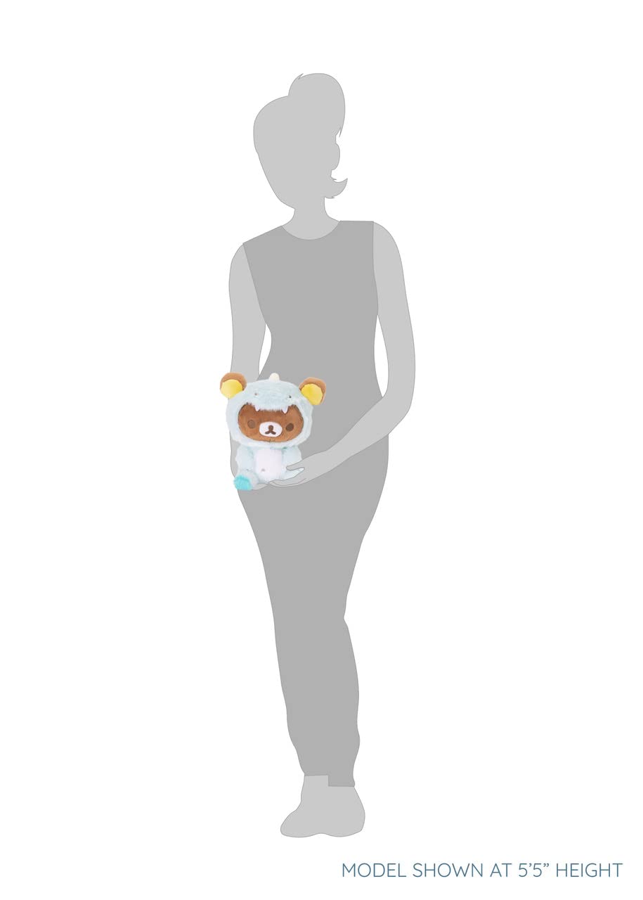 • Q: How big is the Rilakkuma Dino Plushie? A: The Rilakkuma Dino Plushie measures approximately 6.0 inches in length and 7.0 inches in width, making it a great size for playtime or as a decorative piece.
