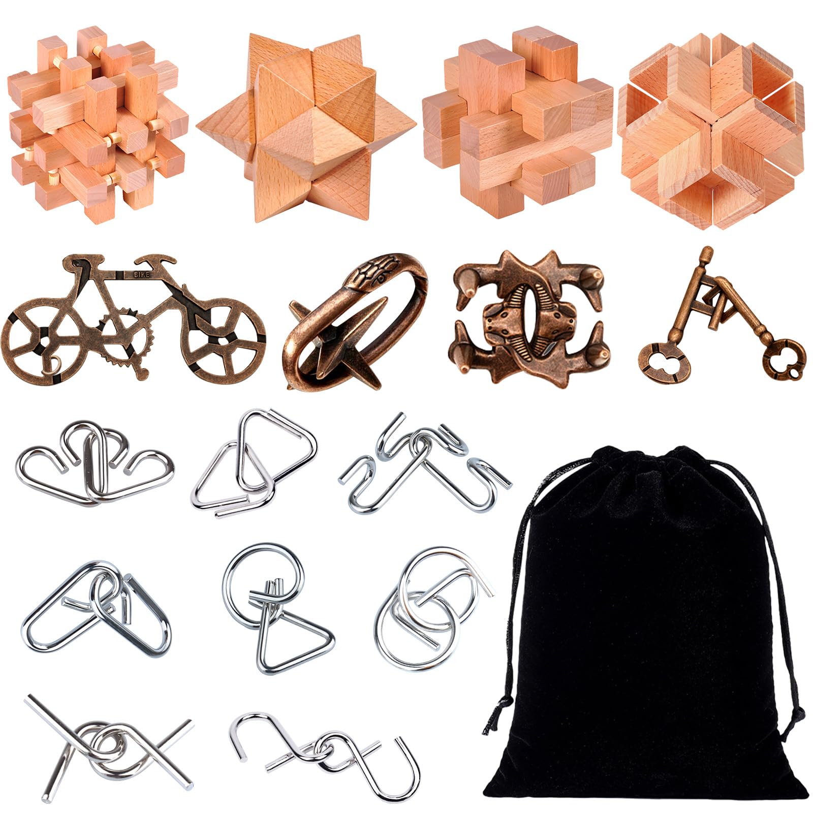 Brain Teasers Set : Include 16 pcs | Challenge Your Mind : These various metal and wooden with varying difficulty levels challenge your mind | High-Quality Materials : Made from premium wood and metal, comfortable handling and long-lasting, suitable for repeated assembly and disassembly | Relax and Unwind: Focus on solving to temporarily forget your worries, relax your mind | Suitable for Everyone: From beginners to masters, everyone can find a suitable challenge, making it an ideal choice for family gatherings