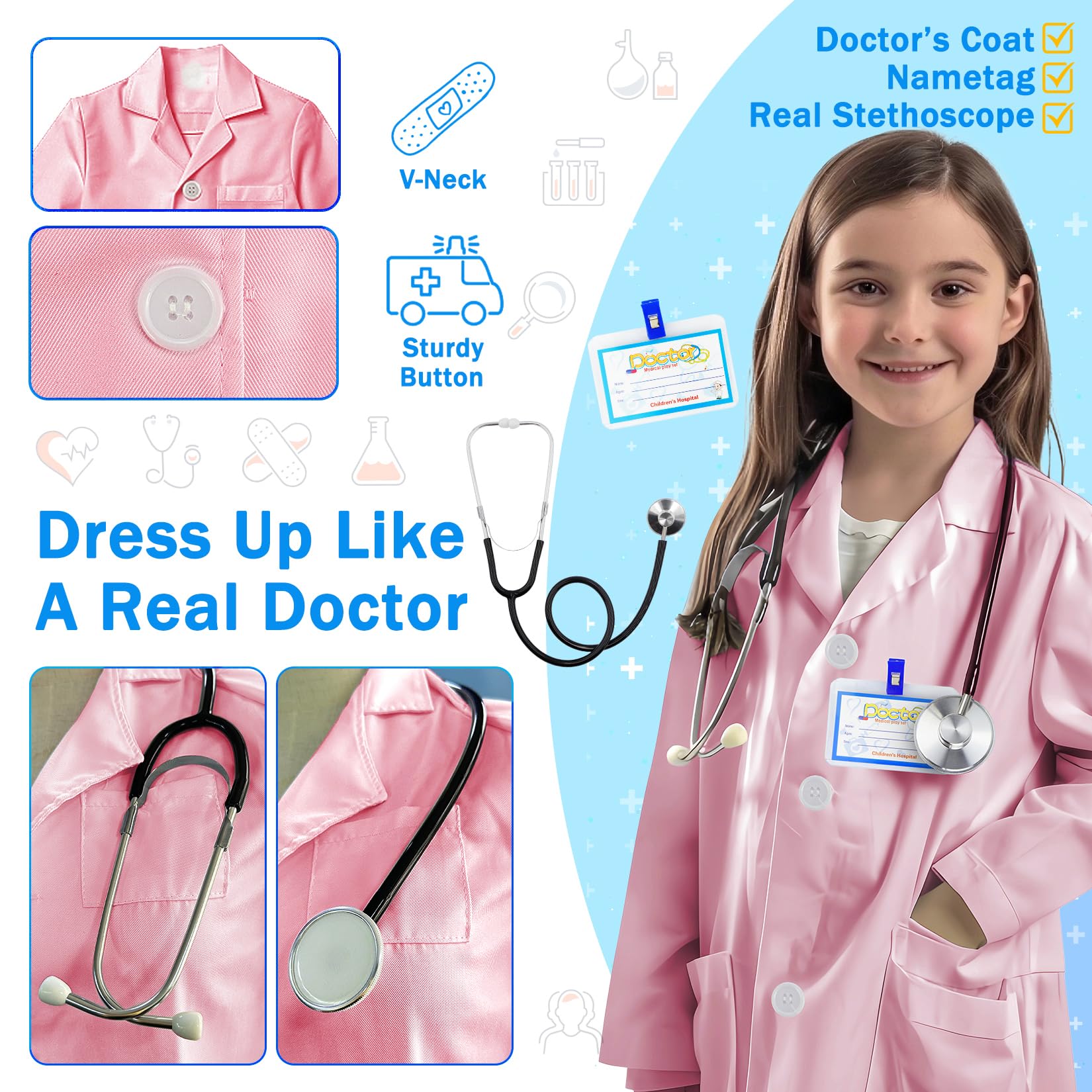 View compareRiorand Kids' Doctor Lab Coat Costume With Accessories Role Play For Boys Girls Playset Nurse Costume Age 3-12 (Pink, Xl-150Cm/1