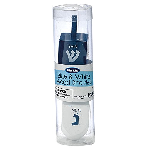 Rite Lite Blue/White Large Wood Dreidels, 2.75'', Set Of 2/Gift Box