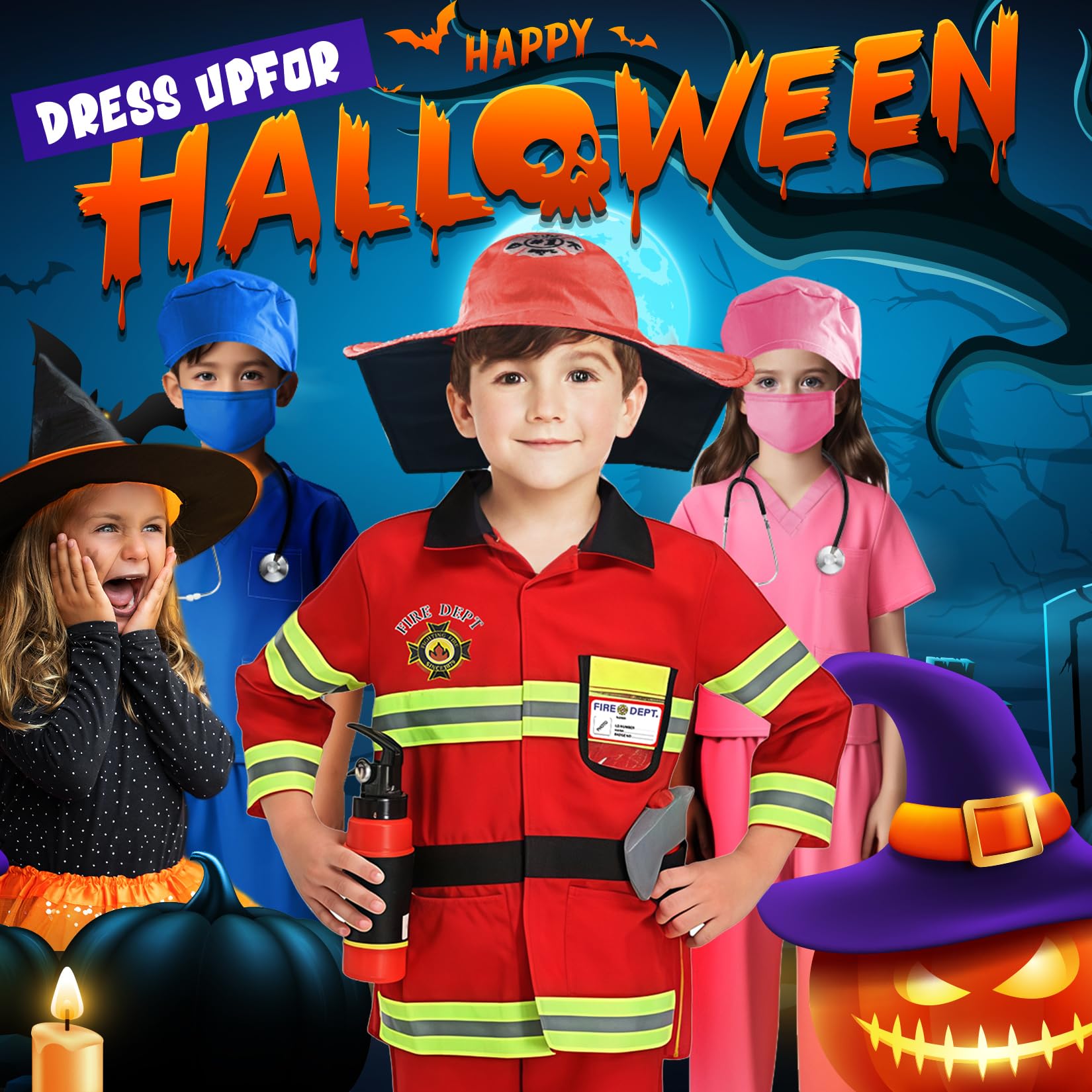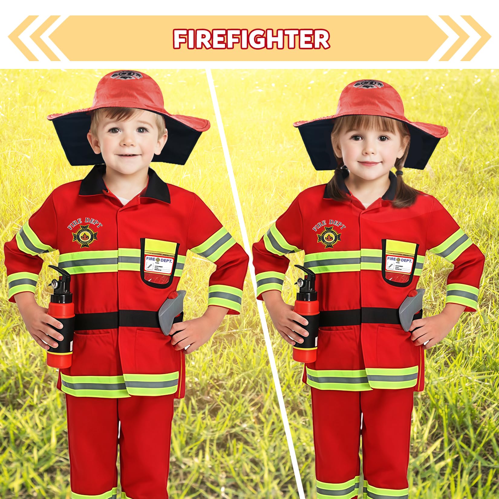 Rizuko Firefighter Costume For Kids With Tool,Fireman Outfit Toys For Boys And Girls Birthday Halloween Party Dress Up 8Pcs (Red