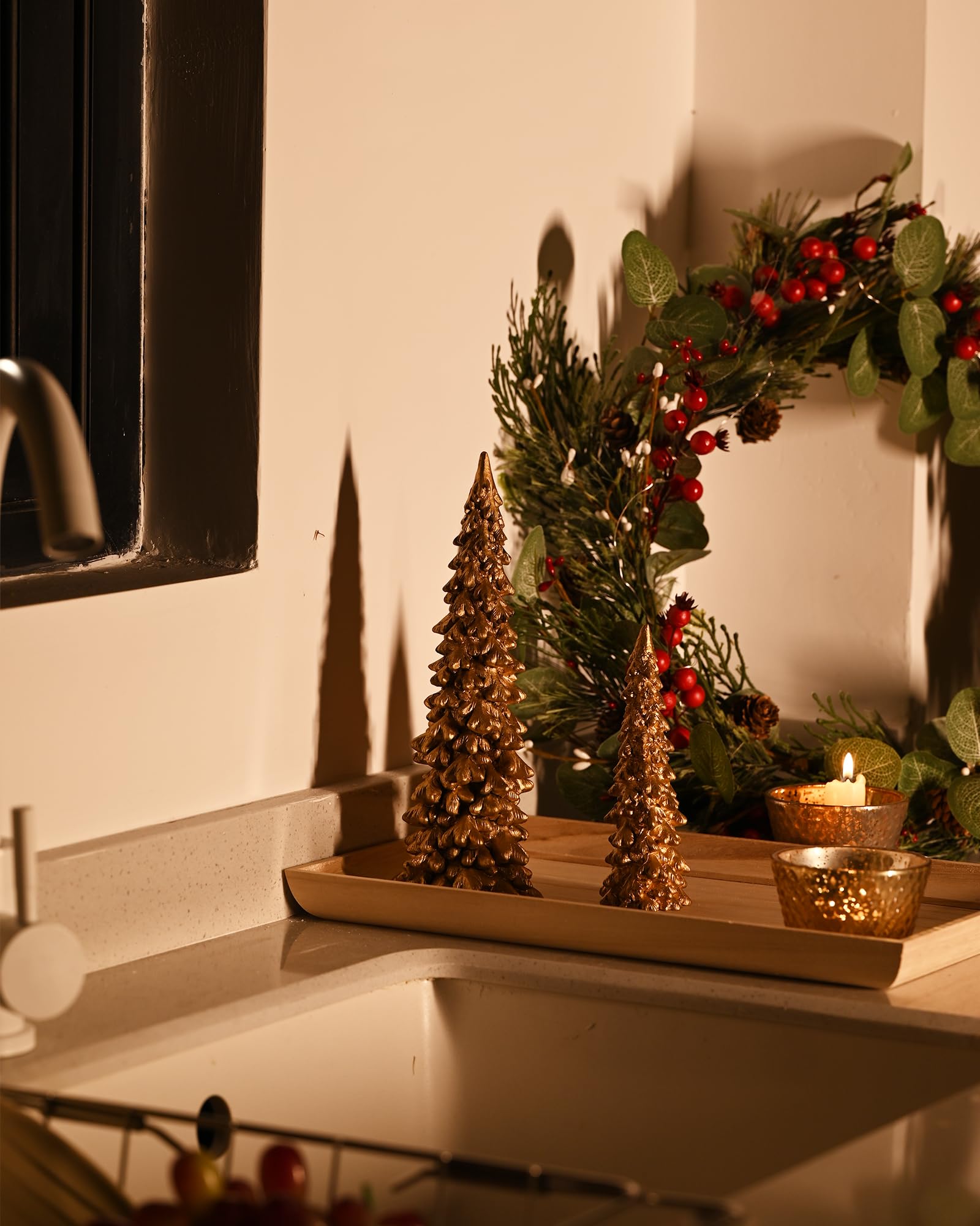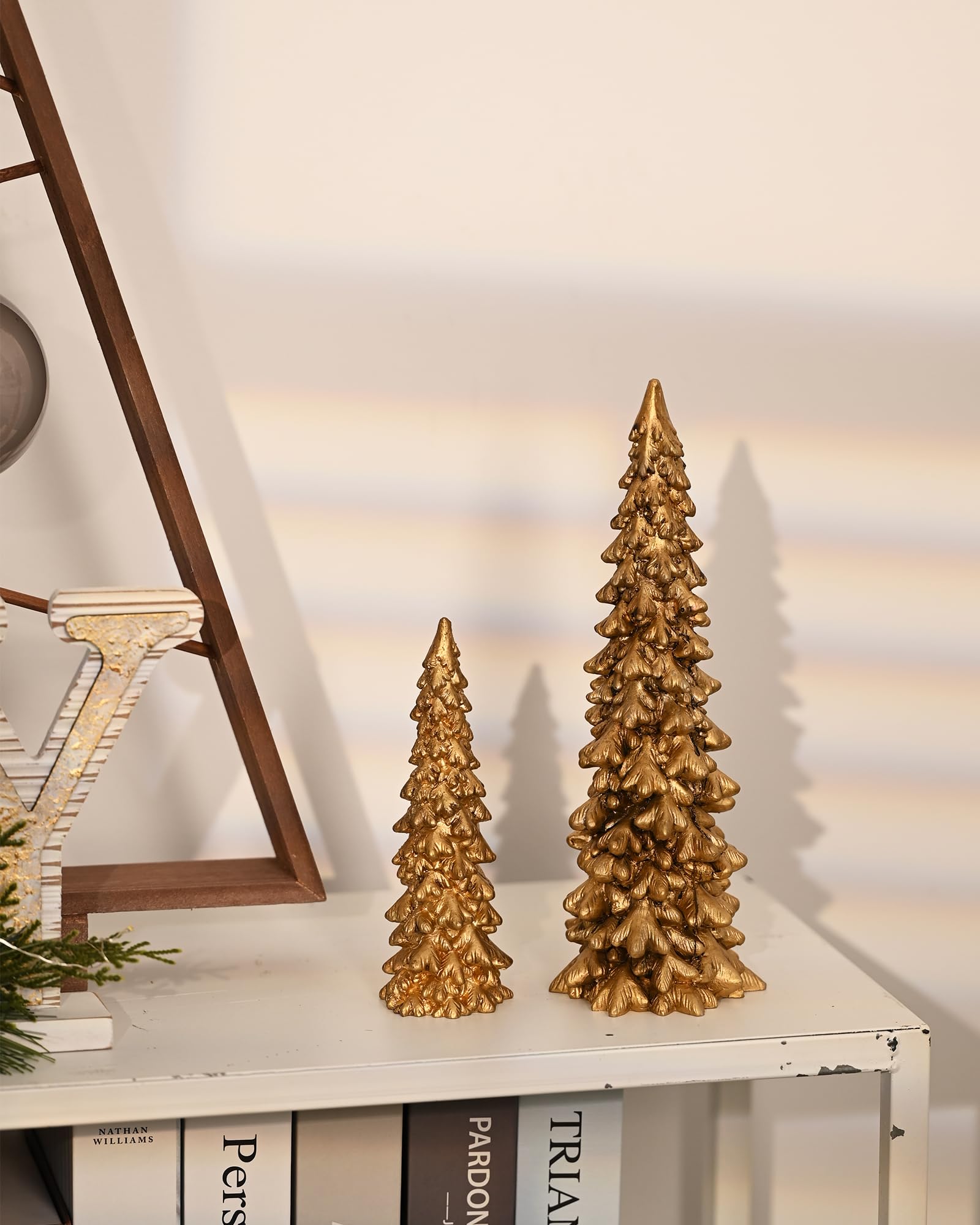 Rm Roomers Resin Christmas Tree Figurines Clearance,2Pcs Small Gold Christmas Decorative Figurine Set, Indoor Tabletop Christmas