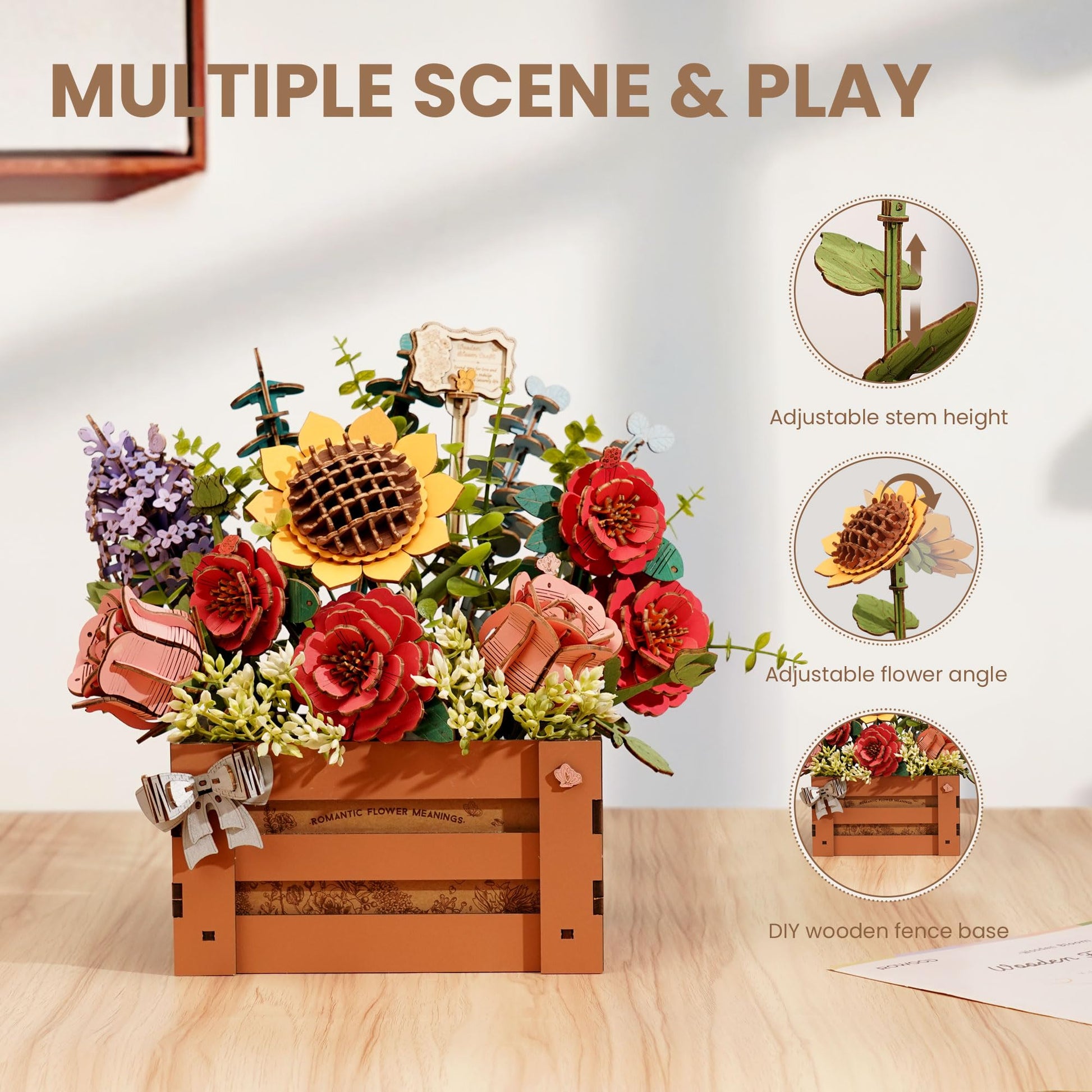 - Q: How difficult is the assembly process for this wooden flower kit? A: The assembly process is straightforward and designed to be enjoyable for all skill levels. With detailed instructions included, you can easily put together the wooden bouquet without requiring any professional tools or skills.