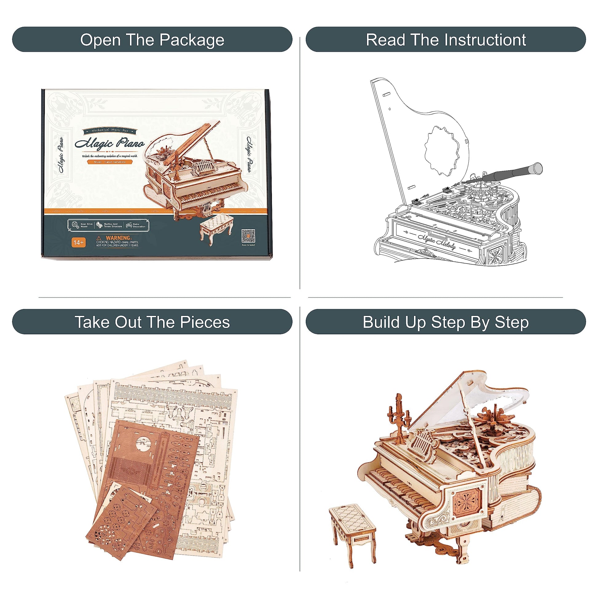 - Q: Can the ROBOTIME AMK81 Magic Piano be easily assembled by beginners? A: While the ROBOTIME AMK81 Magic Piano presents a fun challenge with its 223 laser-cut pieces, it is designed for adults and older children who enjoy puzzle-solving. Beginners may find it challenging but will appreciate the rewarding experience of completing such a unique mechanical model.