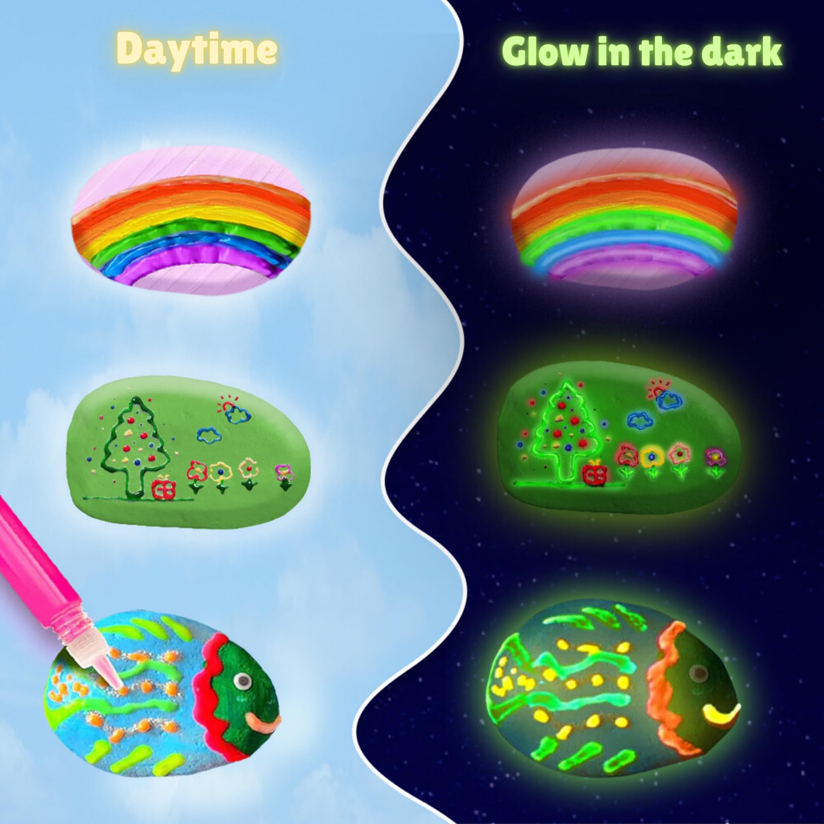 Rock Painting Kit for Kids 6-12 - Glow in The Dark Rock Painting Crafts Set, Arts and Crafts for kids ages 8-12, Stencils for Pa