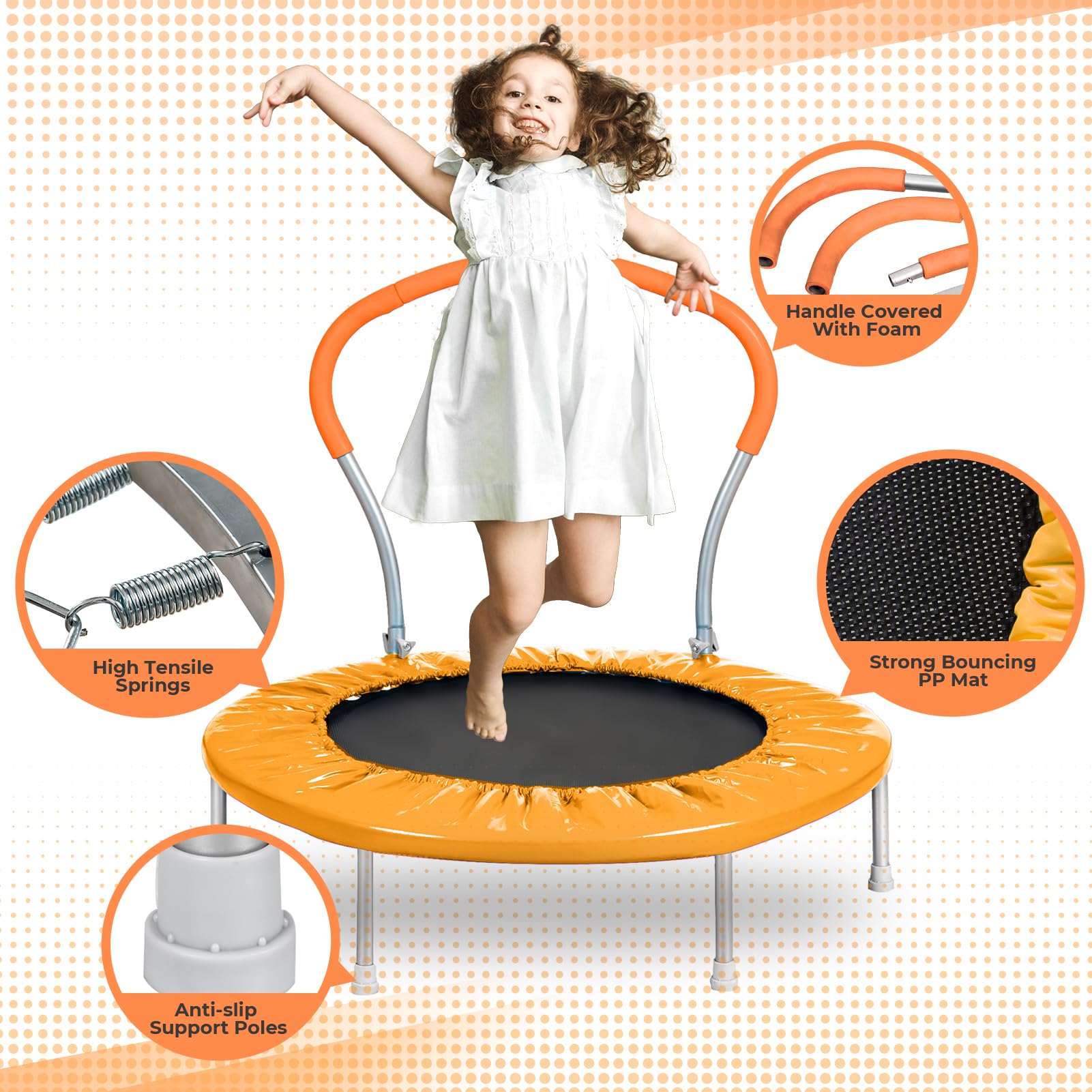 View compareRoinoim Kids Trampoline With Handle - 36'' Mini Toddler Rebounder For Indoor & Outdoor Play, Safe & Sturdy Jumping Exercise Tram
