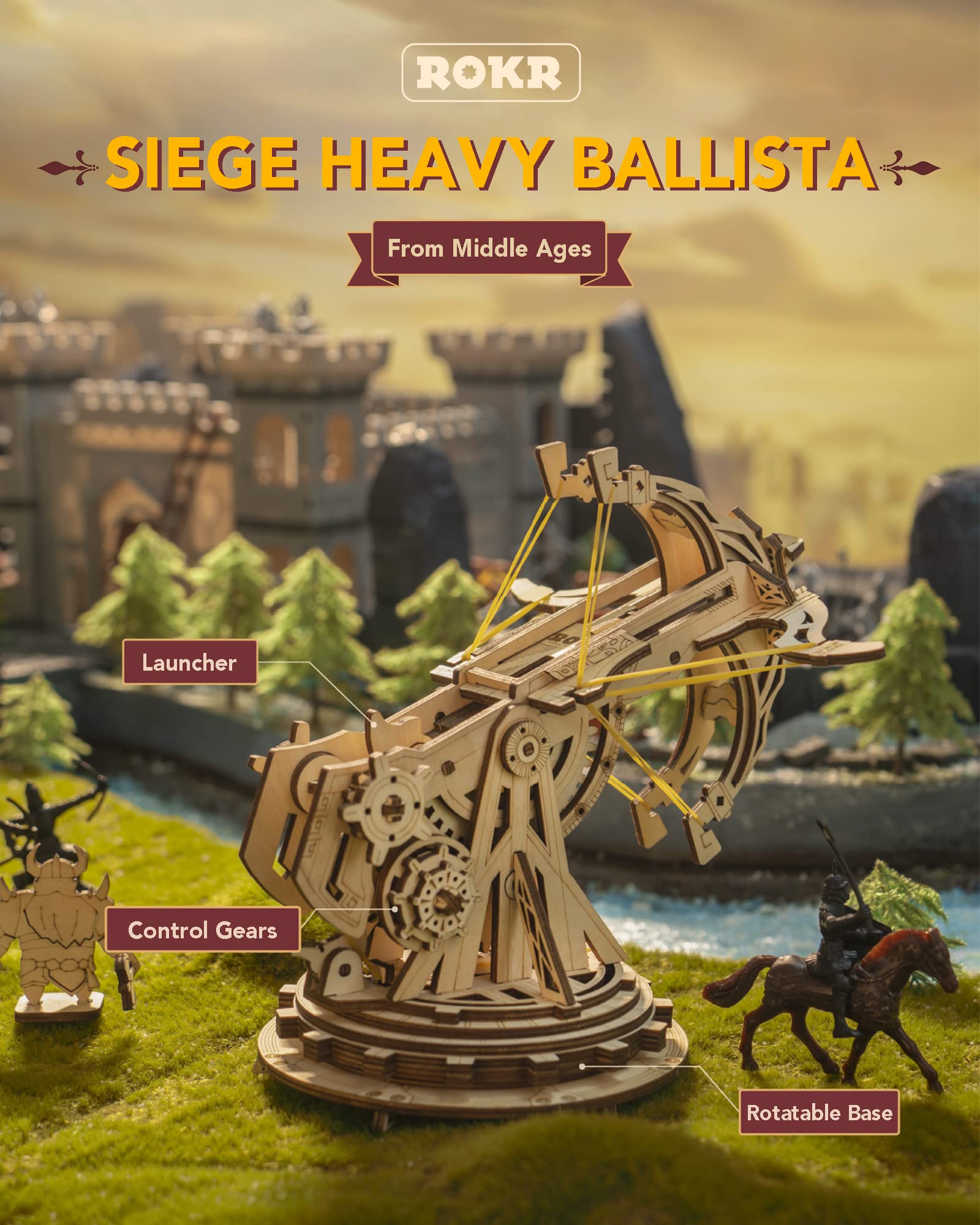 Rokr Diy Wooden Catapult Kit-3D Wooden Puzzle For Adults-Wood Ballista Model Building Kit-Stem Gift For Boys And Girls
