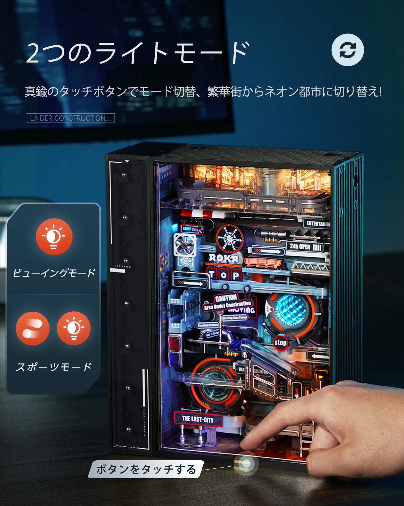 [ROKR The Last City] A cyberpunk-inspired DIY miniature model with a fully automated marble lift. Connect via type-C, tap to start, and enjoy two modes: marble running or lighting display.
