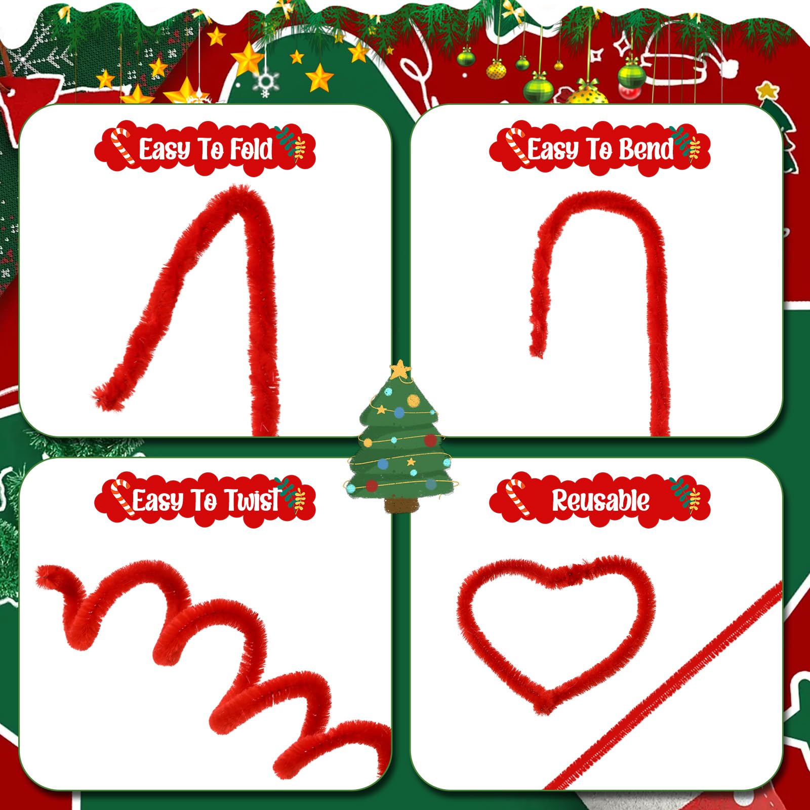 Features: Easy to use: These pipe cleaners are easy and straightforward to work with. You can twist, bend, fold, or wrap them into any shape you want with ease. Unleash your creativity with these craft pipe cleaners. Aesthetic green and red color: The green and red color of these pipe cleaners adds a touch of elegance to your crafts, making them stand out. When youre creating your crafts, these pipe cleaners add a striking visual appeal to all your projects. Specifications: Material: fiber, metal Color: green and red Size: about 0.24 inch x 24 inch/ 6 mm x 61 cm Package includes: 100 x Pipe cleaners Notes: Manual measurement, please allow slight errors on size. The color may exist a slight difference due to different screen displays. Winding risk may exist, please keep our product away from children