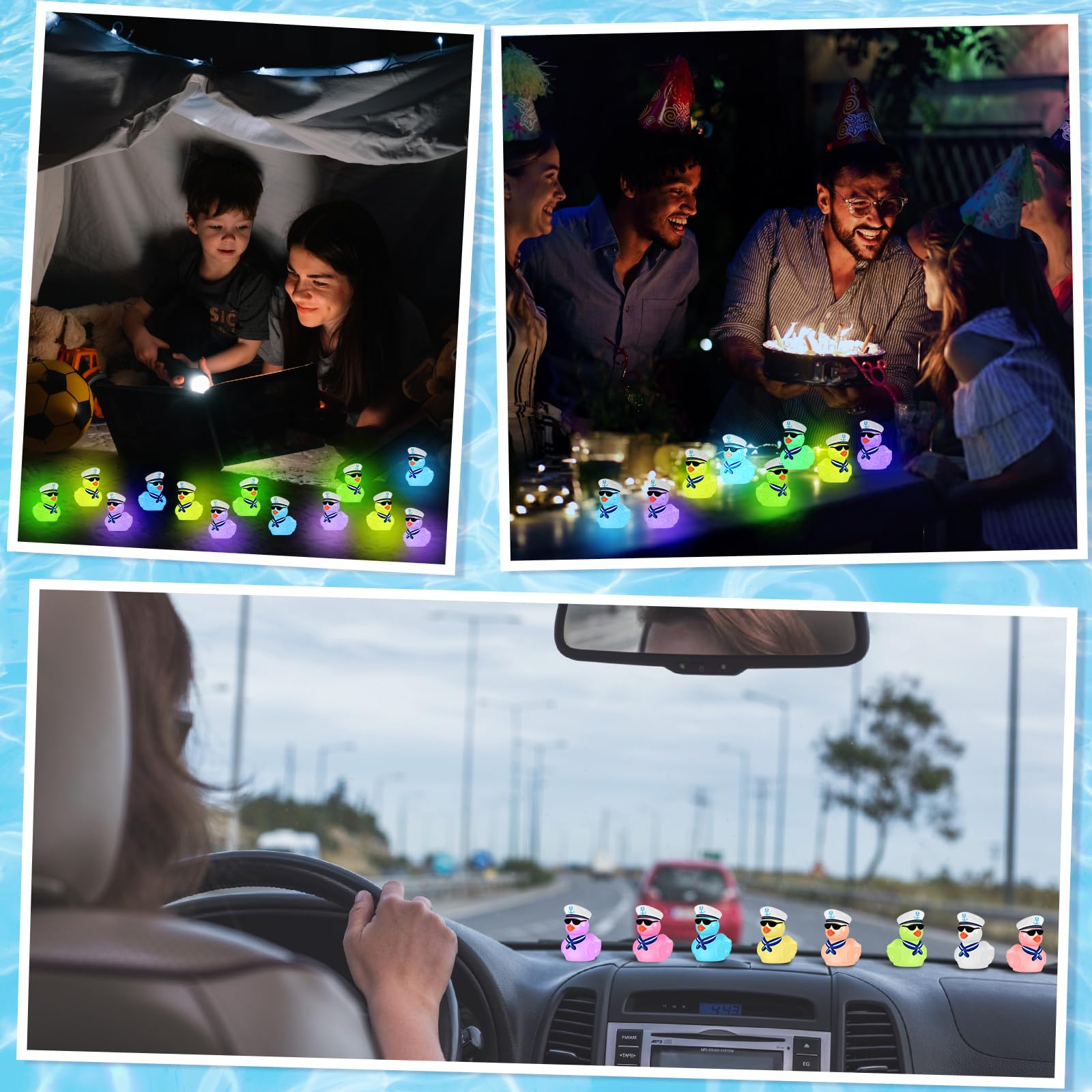 RoundFunny 250 Pcs Mini Resin Cruise Ducks with Sunglasses Bulk Glow in The Dark Tiny Colorful Sailing Rubber Cruise Ducks for M