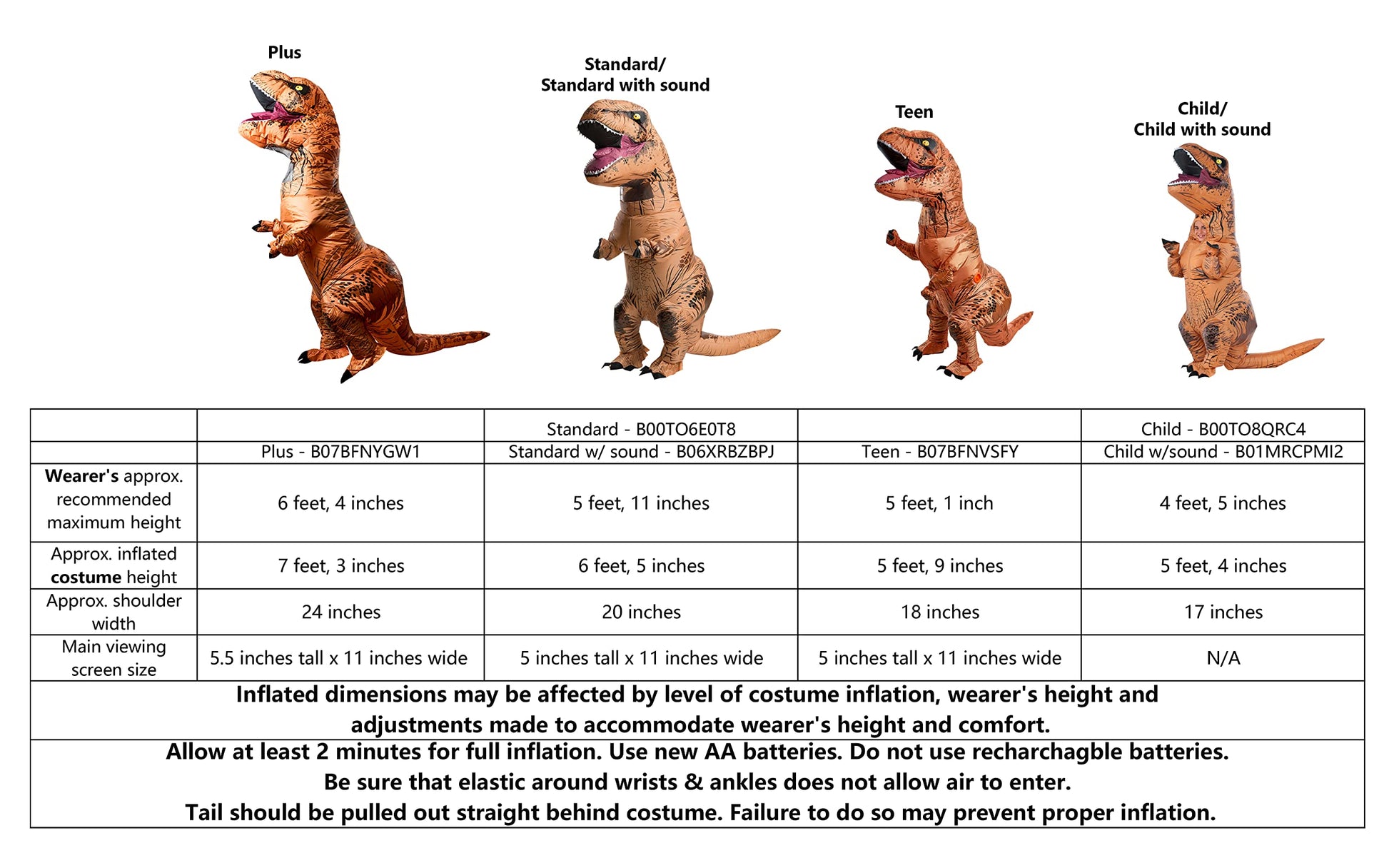 View compareRubies Fun Inflatable Original T-Rex Dinosaur Costume For Kids, With Sound, For Themed Party and Halloween, Standard Size
