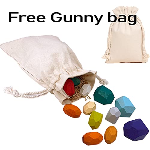 Rubrab Wooden Rocks Stones Tumi Ishi Wood Balancing Stacked Stone Baby Building Block Montessori Toys Block Colored Stone Toys Educational Creative Toy Stacking Game Artware (16Pcs Deep Colors)