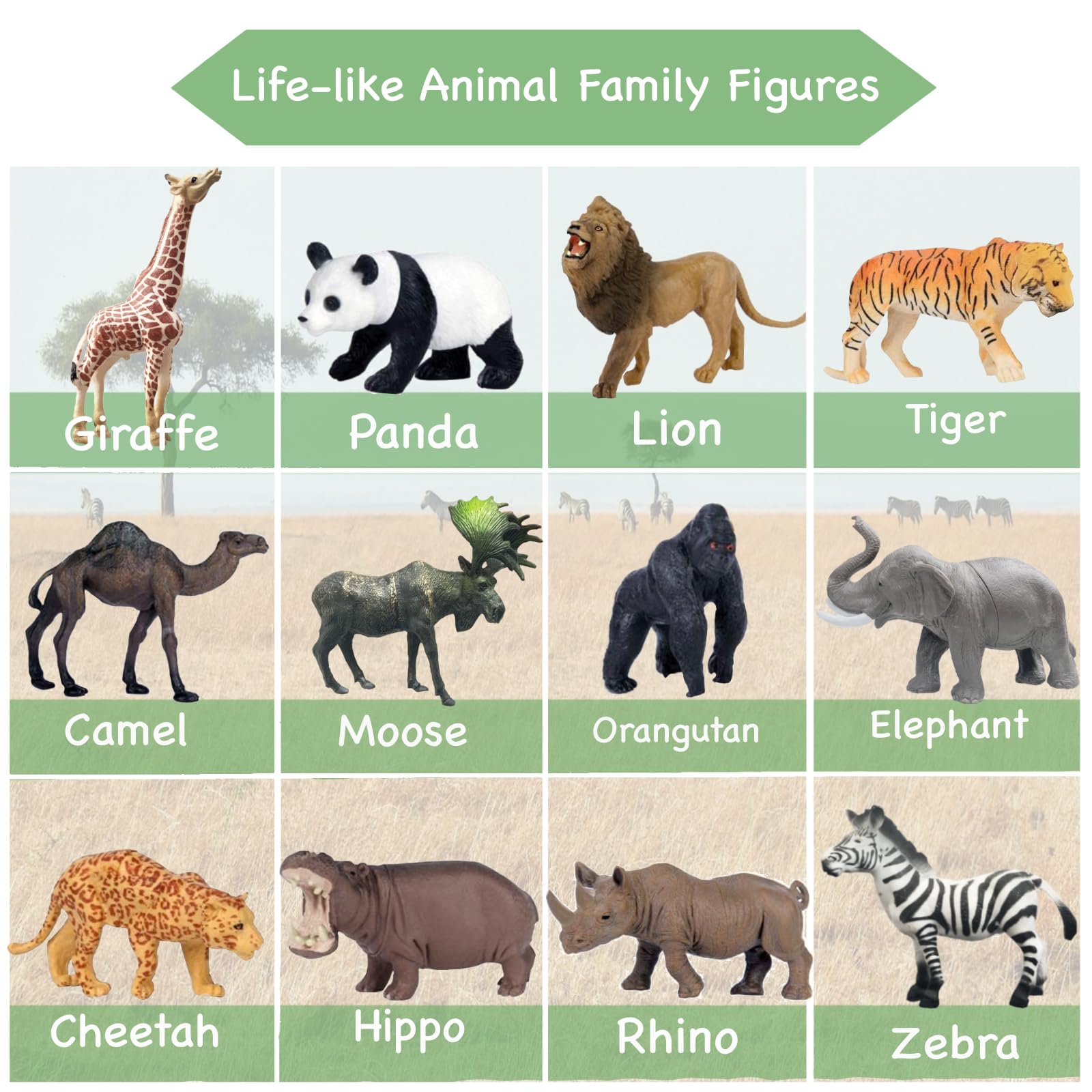 Ruson 12 Pcs Realistic Jungle Animal Figurines, Safari Animals Figures Toys Cake Topper Plastic African Wild Zoo Animals Playset Party Supplies For Kids Toddlers