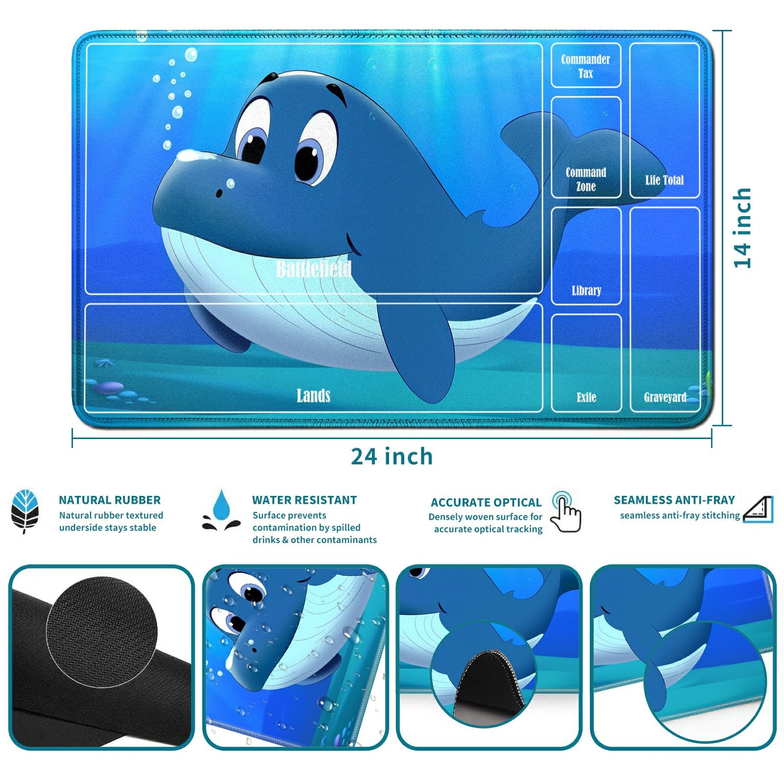 View compareRwutytiul Dolphin Card Playmat 24 X 14 Inch With Tube Bag, Card Gameplay Mat With Zones Commander Deck Board Mtg Rpg Ccg Tcg Car