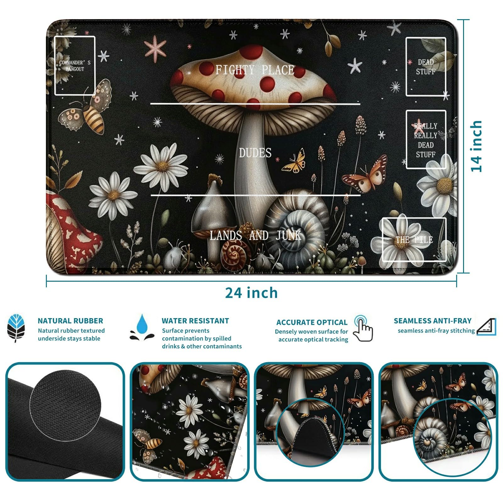 RWUTYTIUL Mushroom Card Playmat 24 X 14 Inch with Tube Bag, Card Gameplay Mat with Zones Commander Deck Board MTG RPG CCG TCG Ca