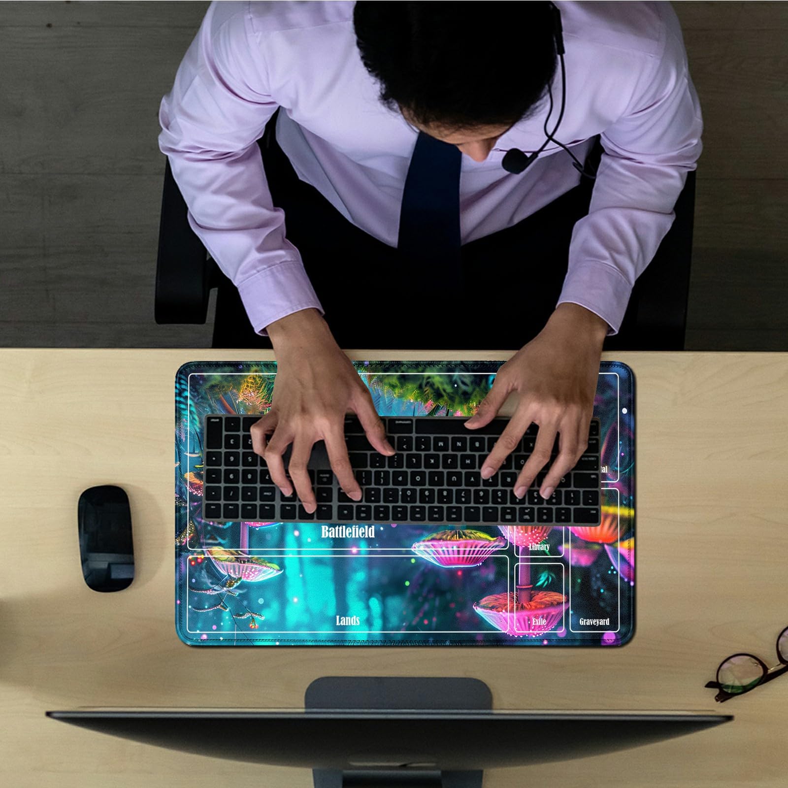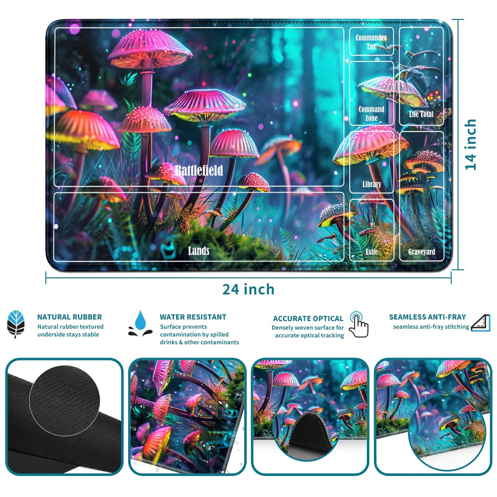 RWUTYTIUL Mushroom Forest Card Playmat - 24 X 14 Inch with Tube Bag, Card Gameplay Mat with Zones for Commander Deck MTG RPG CCG